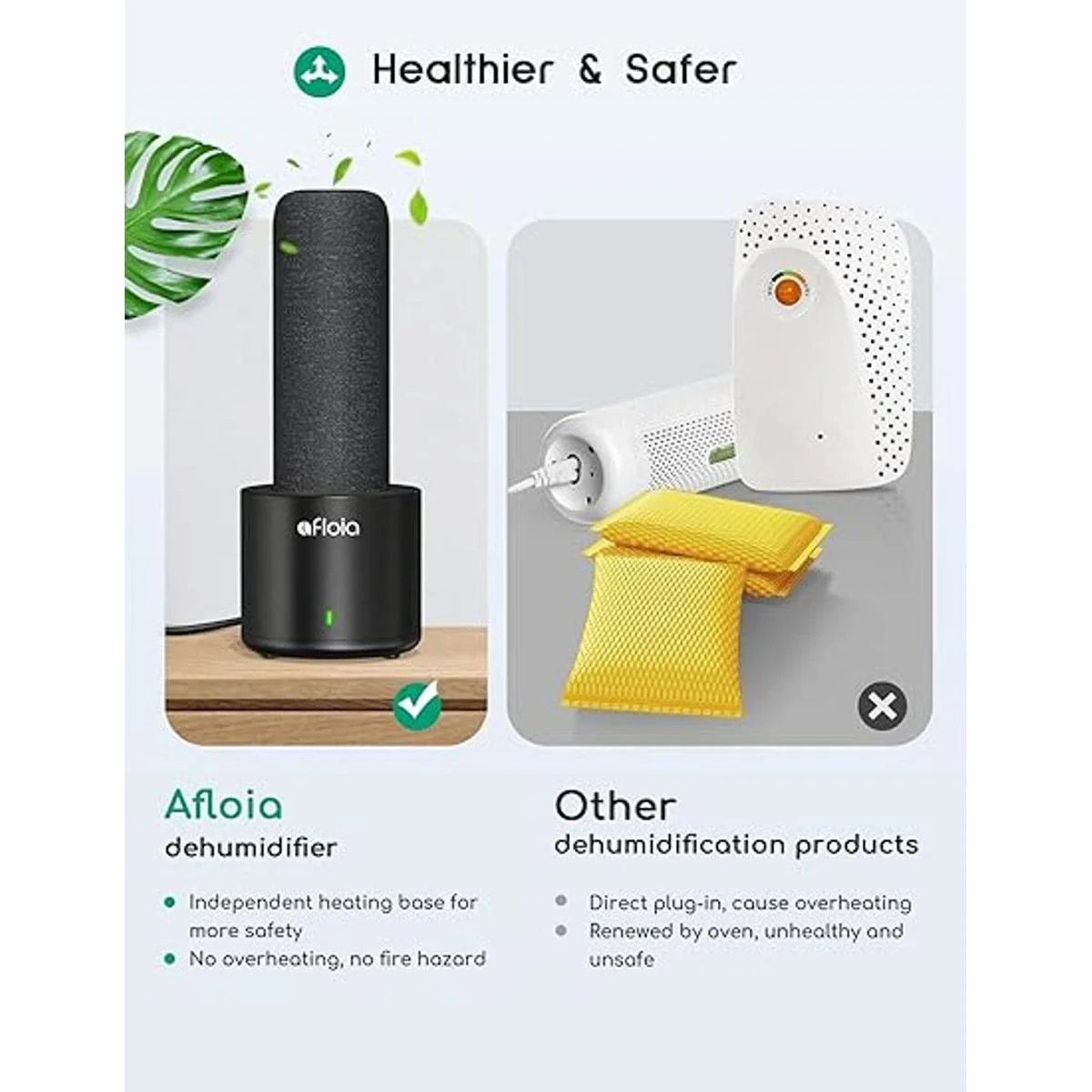 Respetuoso con el medio ambiente: no requiere baterías ni electricidad para que este deshumidificador inalámbrico se deshumidifice, solo 50 W de bajo consumo de energía para la base de calefacción enchufe estándar americano, CA 100120 V 50/60 Hz. No te preocupes por la inclinación del tanque de agua o el desbordamiento. Si tienes alguna pregunta, no dudes en ponerte en contacto con nosotros. Afloia siempre ofrece un plan cuidadoso para garantizar tu experiencia perfecta.