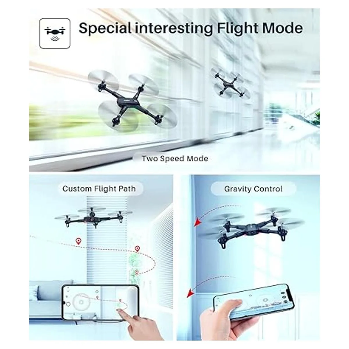 Multifunción: el dron de control remoto X800W optimiza cuidadosamente la experiencia del usuario para satisfacer las diversas necesidades de los jugadores. La rotación de una sola tecla y el giro 3D hacen que el dron con cámara volando sea más divertido, también puedes personalizar la ruta de vuelo en el mapa SYMA FLY y cambiar la velocidad modo de velocidad baja/alta del dron de carreras para adaptarse al nivel de vuelo del jugador.