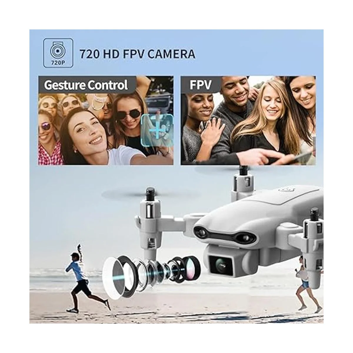 Imágenes HD y videos en directo: V9 equipado con cámara 720P HD WiFi para tomar mejores fotos y videos aéreos; con transmisión FPV, puedes ver el cielo desde una alimentación de video en directo a través de la aplicación de tu teléfono inteligente.