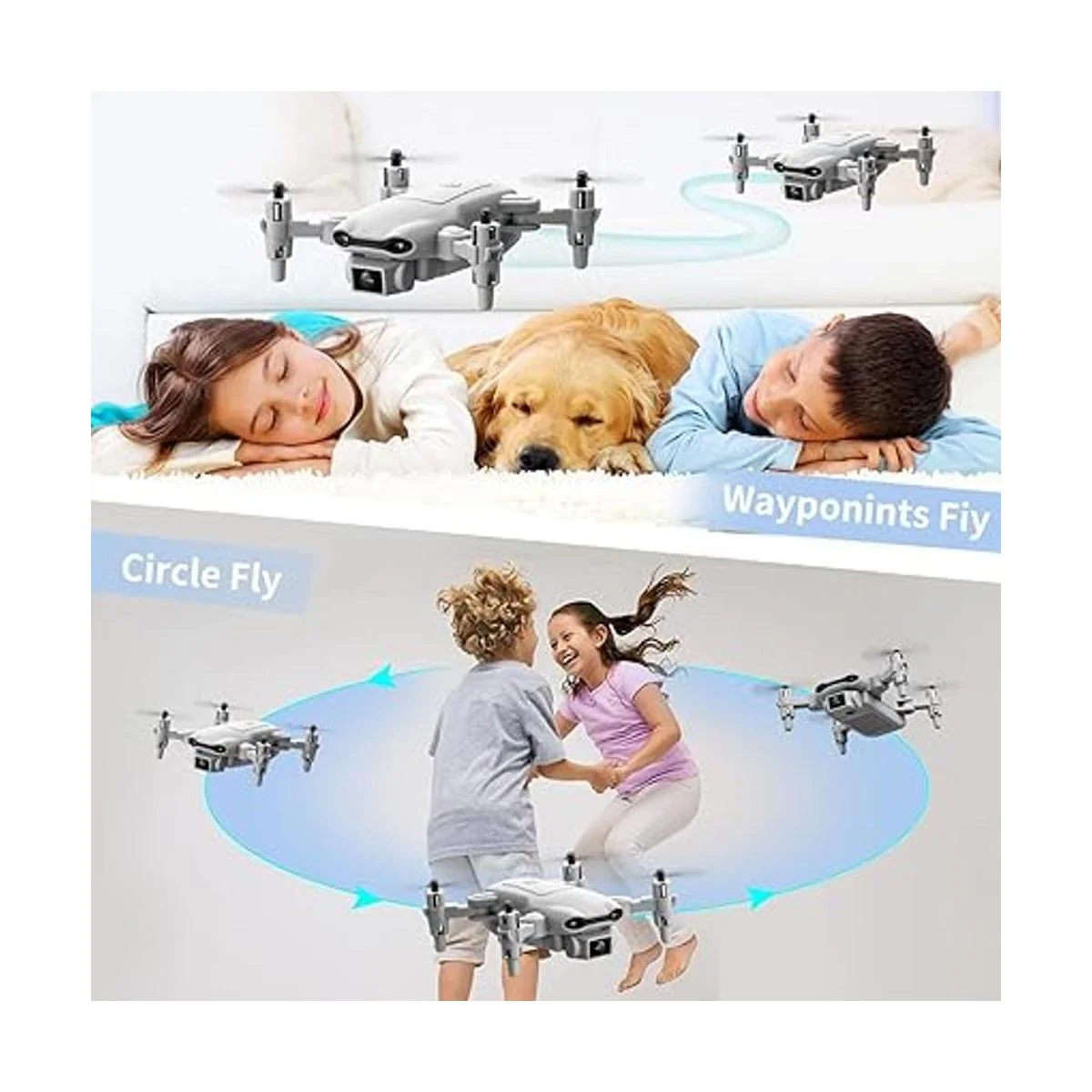 Giros 3D y vueltas de Waypoint: Empuja los palos de control hacia adentro para realizar una impresionante vuelta; dibuja un curso de vuelo en tu teléfono inteligente, el dron volará en consecuencia, añade diversión a tu vuelo.