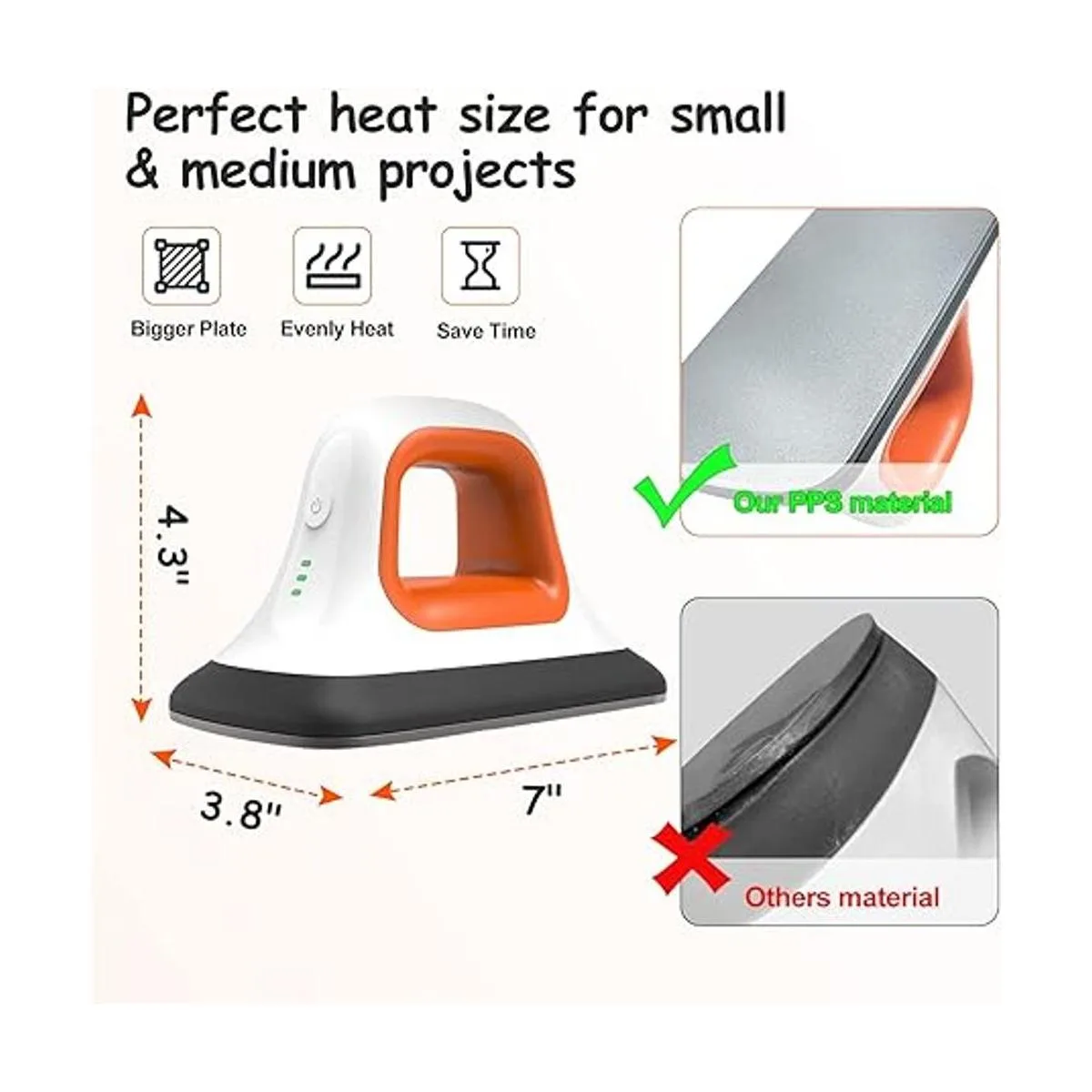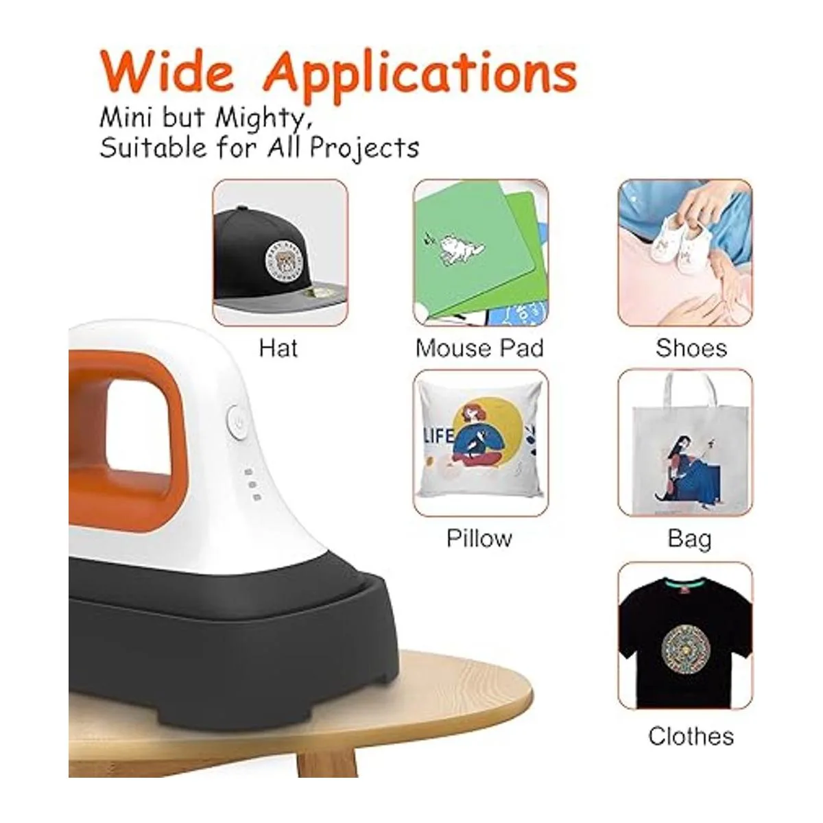 DOUBLE AS A MINI IRON Not only can it be used as a DIY heat press, but also as a portable iron that can be put in a backpack or suitcase easily, helps you to remove wrinkles from your clothes whenever and wherever you travel. NOTE: Please use wet ironing for faster wrinkle removal.