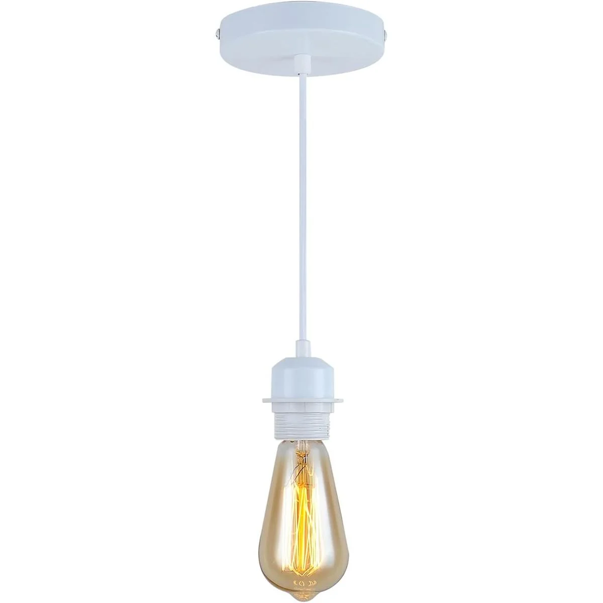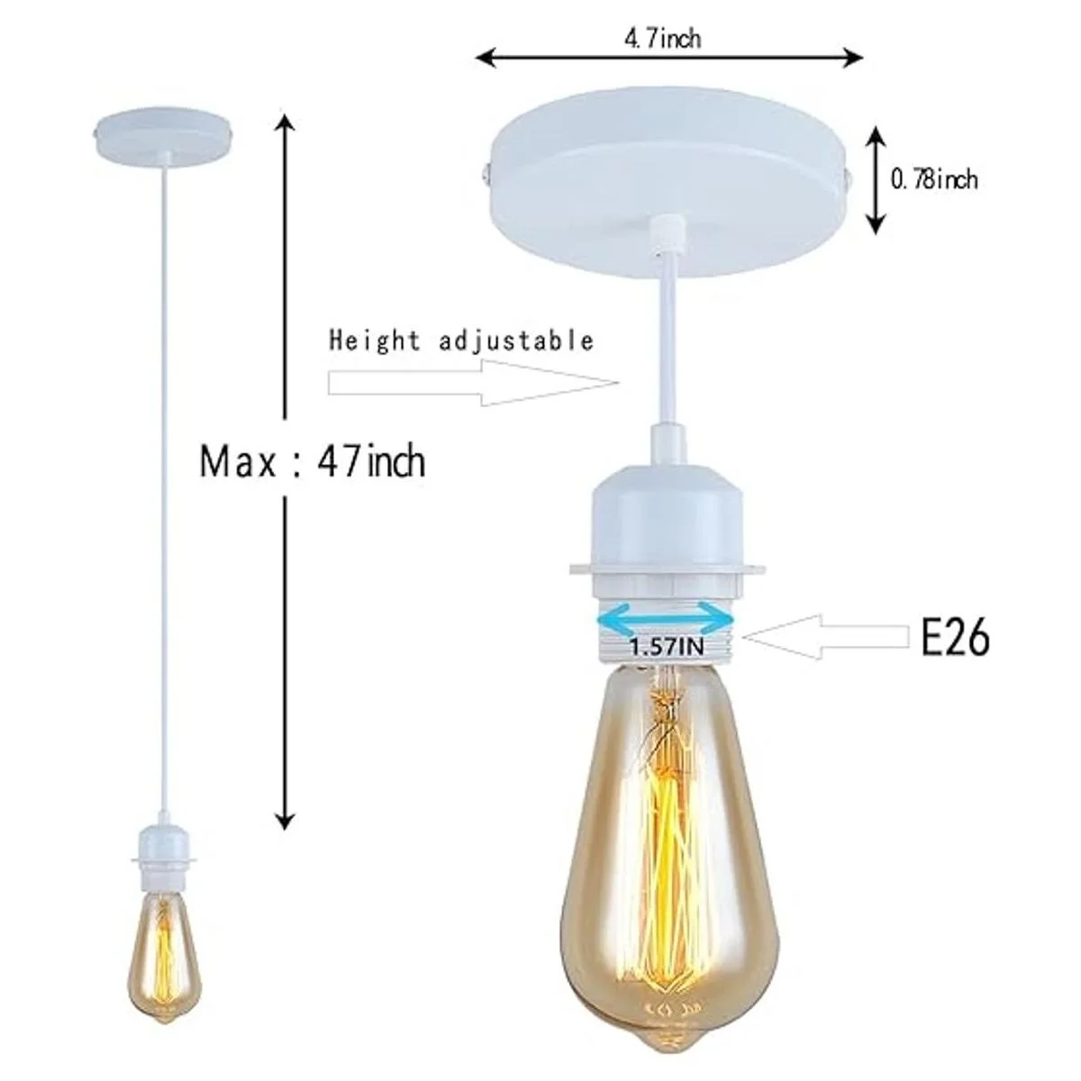 Mini kit de luz colgante industrial, base E26, estilo vintage, cable blanco, lámpara de techo aplicable para casa de campo, dormitorio, decoración de araña de techo blanco