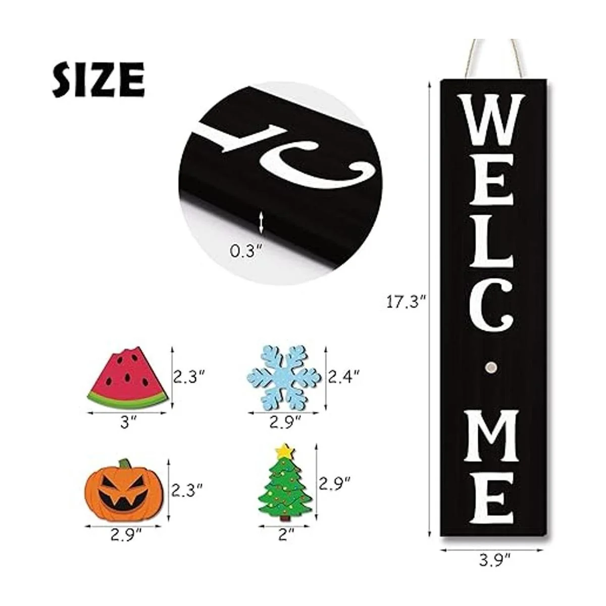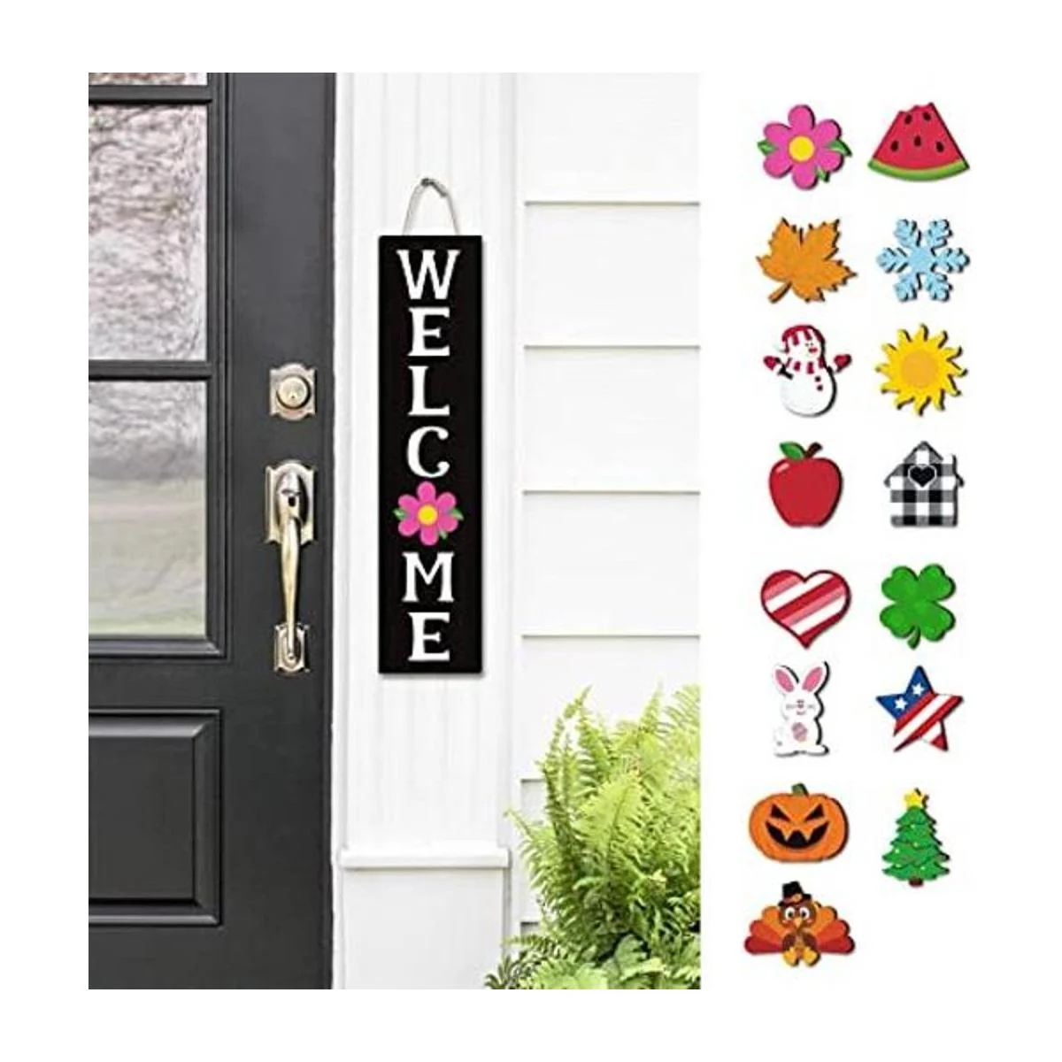 Letrero de bienvenida vertical intercambiable: el paquete incluye 1 letrero de bienvenida vertical con 15 rebanadas intercambiables. Podrás obtener grandes actualizaciones de tu hogar con los carteles para cada día festivo durante todo el año.