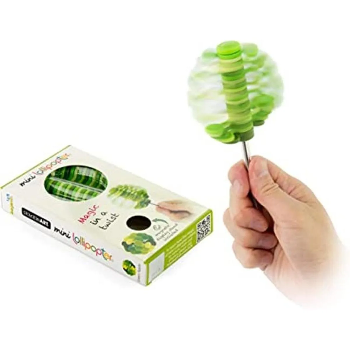 Deliciosamente jugable: con un giro rápido, Lollipopter se transforma mágicamente de un remolino a una explosión y de nuevo en un movimiento increíblemente elegante. Para transformarlo, simplemente gira el mango y observa cómo se desarrolla la magia. Para cambiarlo de nuevo, simplemente gíralo de la otra manera. Intuitivo, relajante, divertido… y adictivo