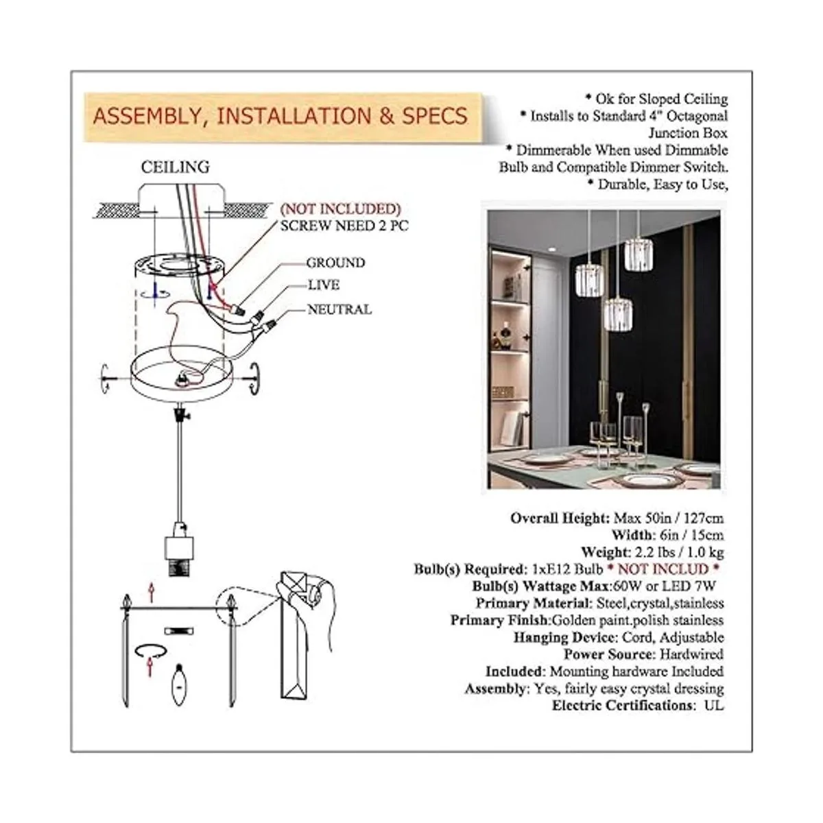 Mini luces colgantes de cristal para baño, dormitorio, isla de cocina, lámpara colgante de cristal, lámpara de techo de suspensión, bombilla de candelabro E12, pintura dorada, acabado de metal, Luenfat