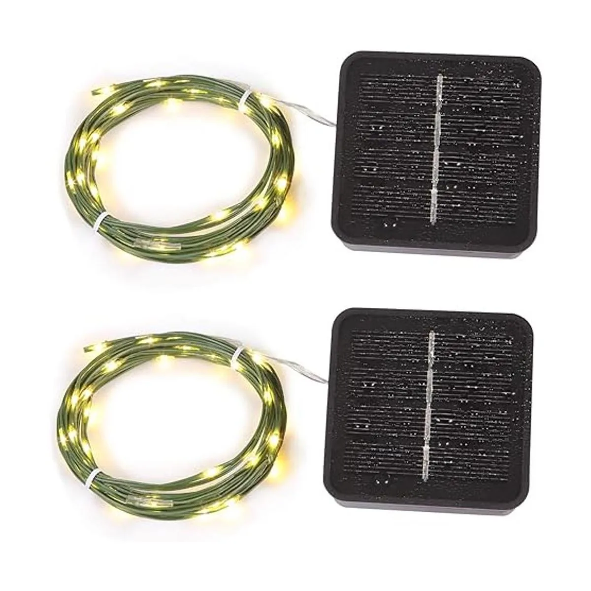 Mini luces cortas de jardín alimentadas por energía solar, impermeable, cadena de jardín para exteriores, cable verde, blanco cálido, 16.4 ft, 50 LED, paquete de 2