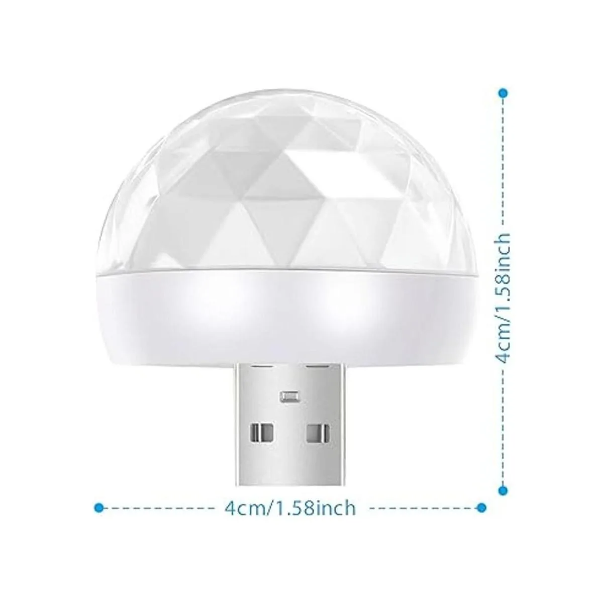 Mini luz de discoteca USB de 1.58 pulgadas 1.6 in activada por sonido, mini bola de discoteca, luz LED de ambiente para coche, luz blanca de fiesta para fiestas de cumpleaños de niños, KTV, club, DJ, escenario, ambiente de Navidad