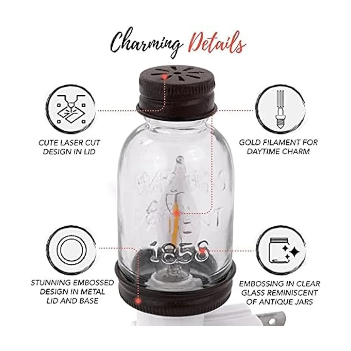 Mini luz nocturna LED rústica en bronce Sensor de encendidoapagado automático Decoración de pared de granja Bonita luz nocturna de campo Bombilla LED de eficiencia energética Diseño atemporal Lámpara de enchufe para el hogar