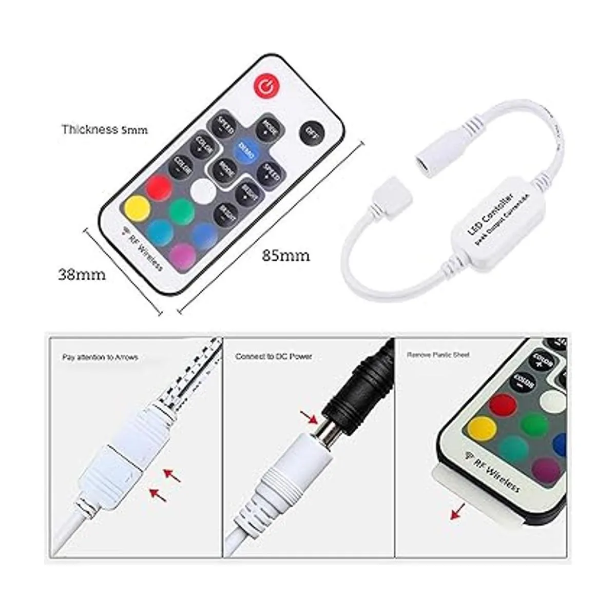 Mini mando a distancia para tiras de luces LED de un solo color, regulador de intensidad de RF para 12 V CC LED, mando a distancia inalámbrico para regulables 3528 5050 bajo gabinete Puck luces, Blanco, 12.0 volts