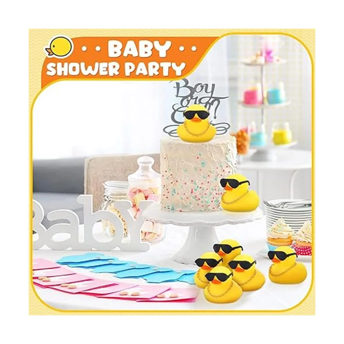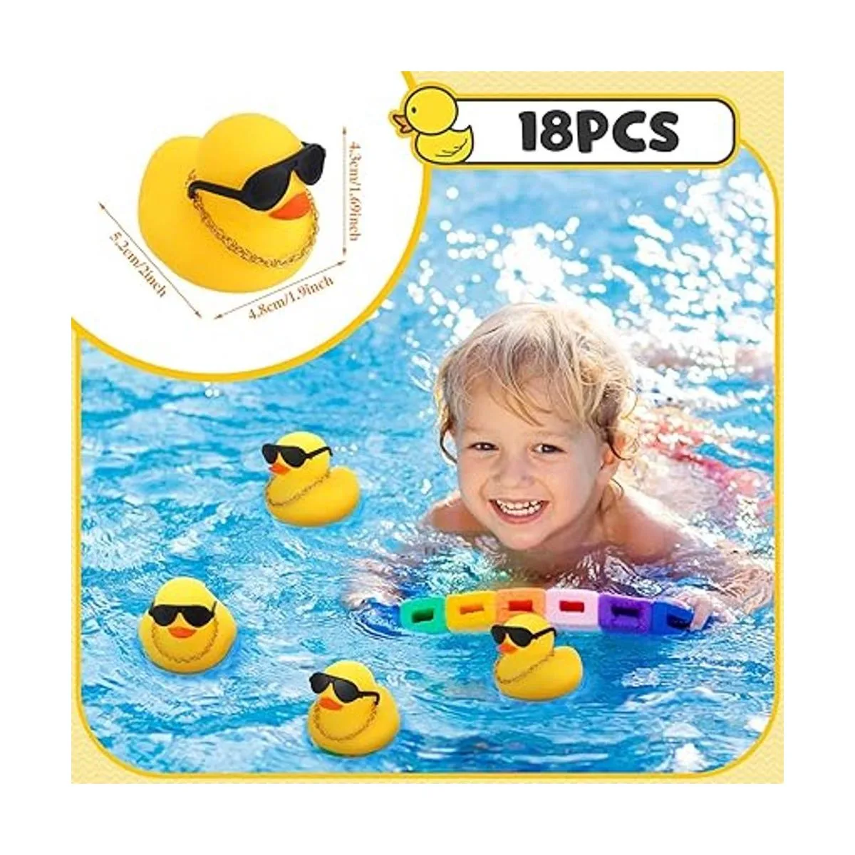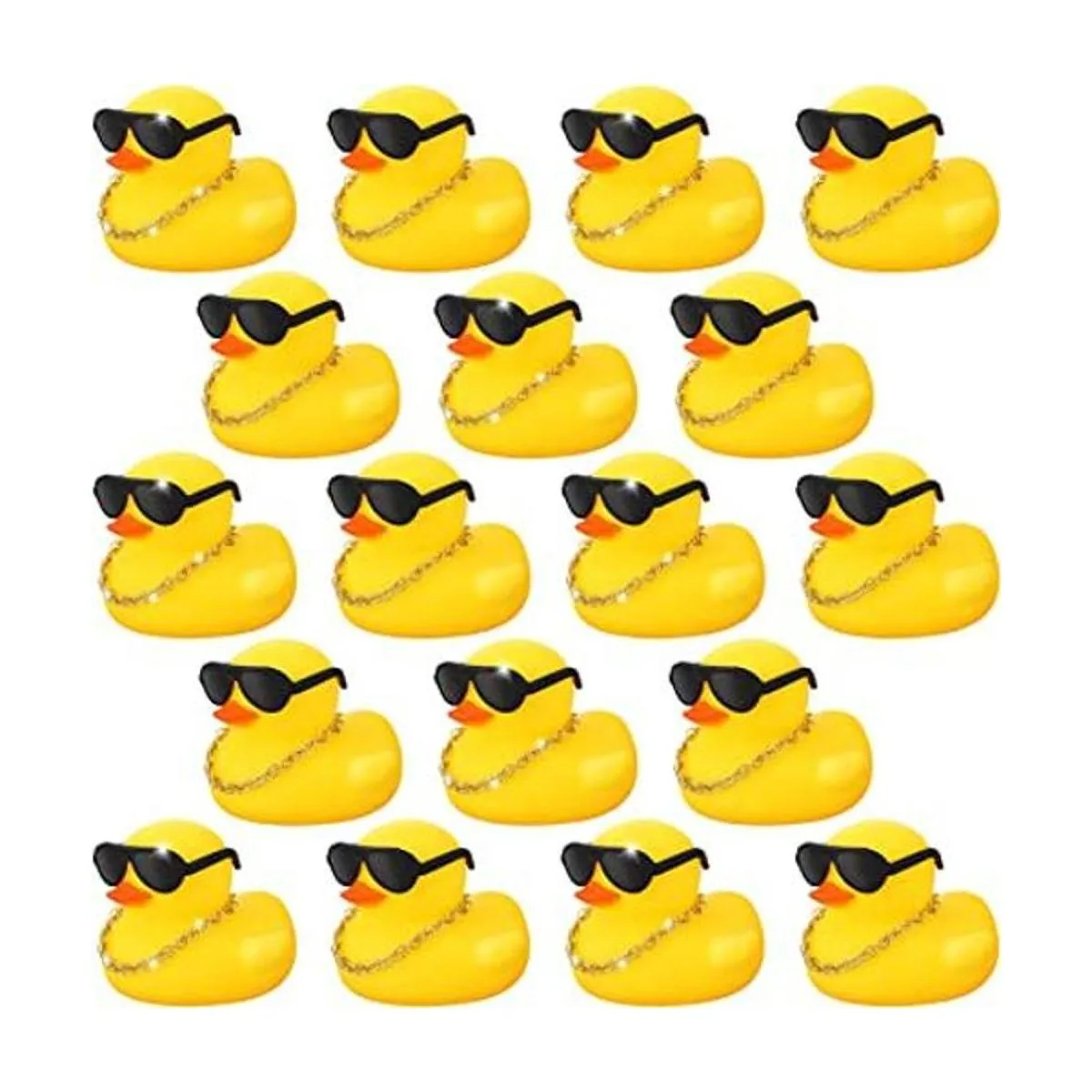 Mini patos de goma para baby shower, pequeños patos de goma a granel con collar de gafas de sol, juguetes de baño flotadores, para bañera, patos mini para ducha, regalos de fiesta de cumpleaños, regalo de carnaval estilo general, 18 piezas