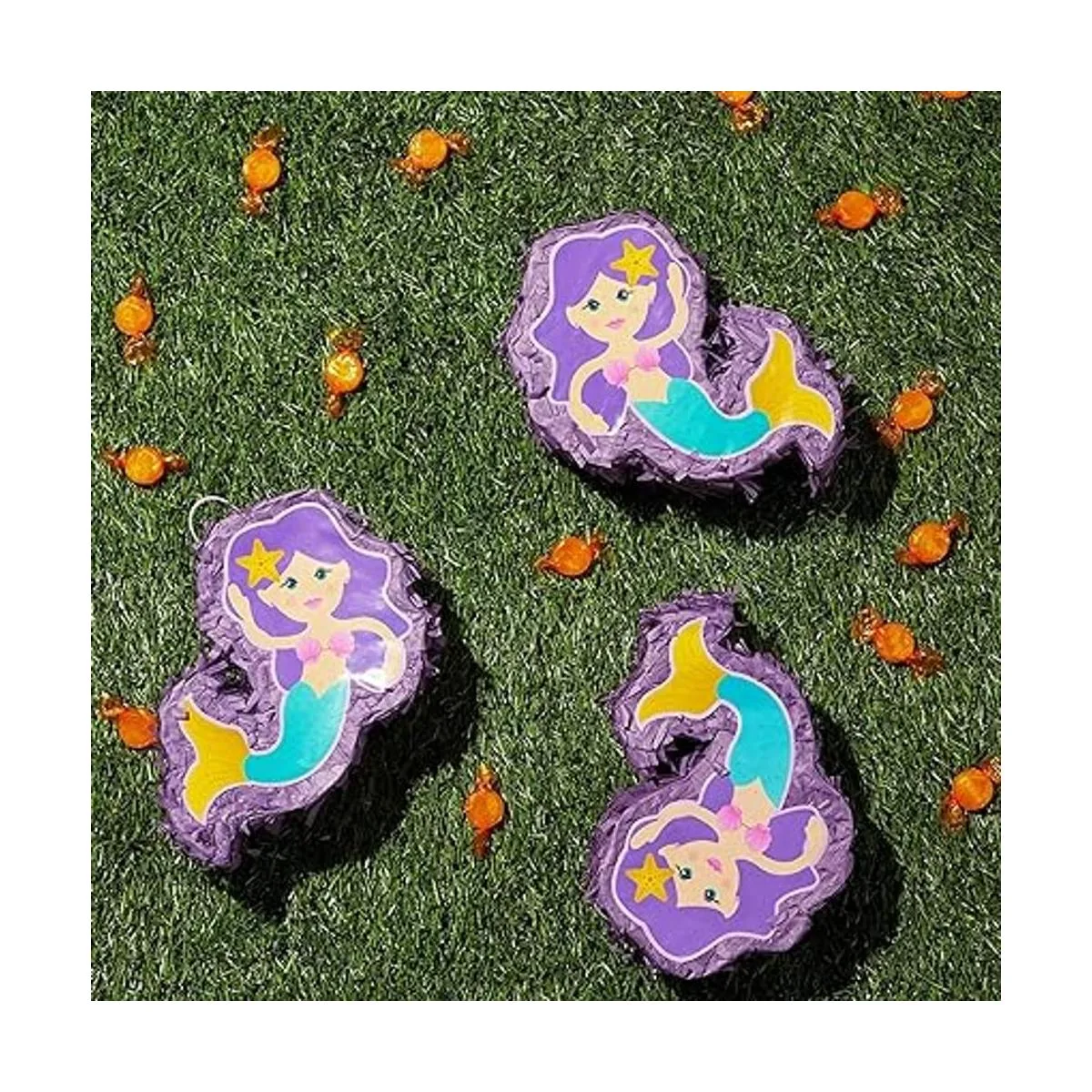 Mini piñatas de sirena para niñas decoraciones de fiesta de cumpleaños (8 x 5 x 2.5 pulgadas, 3 unidades)