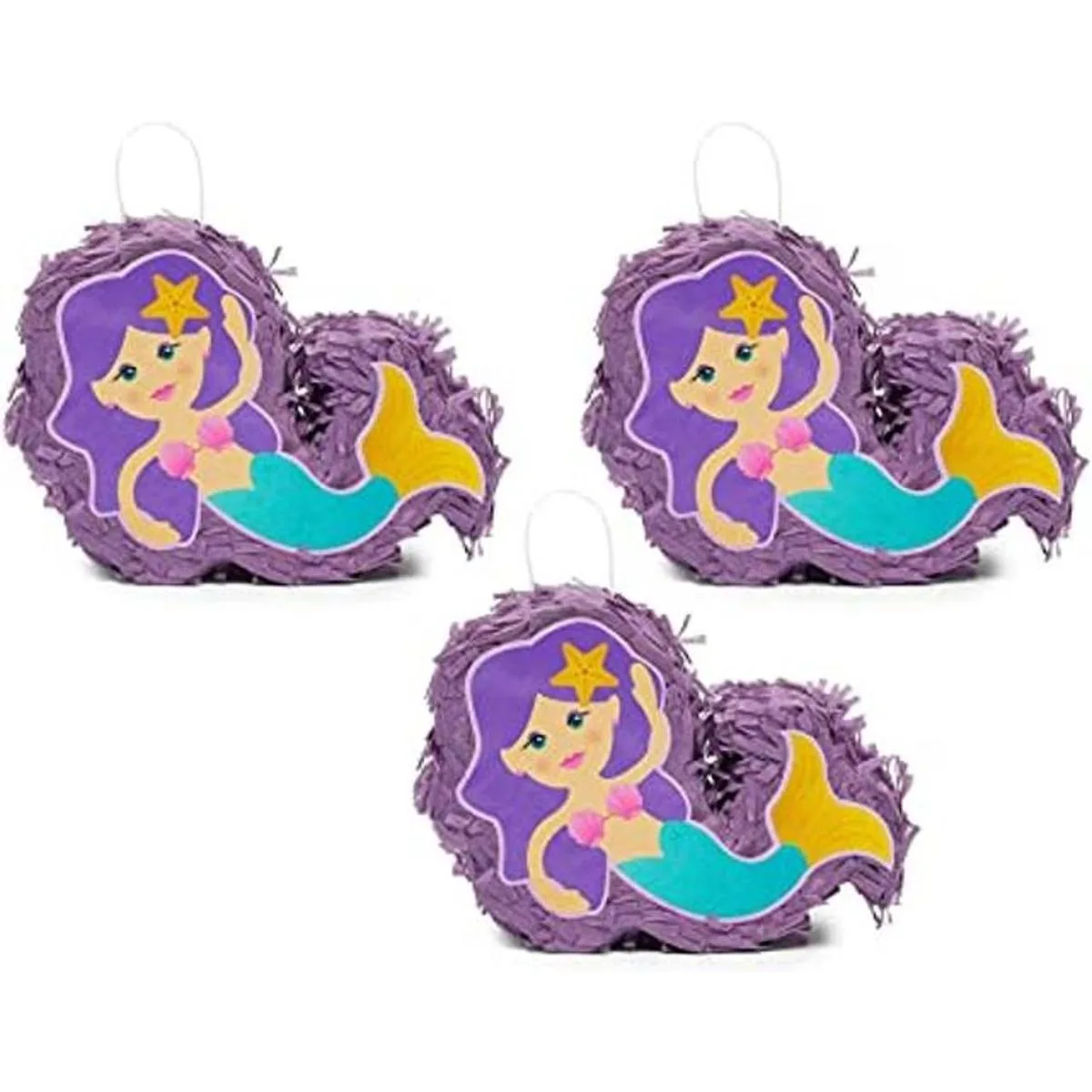 Mini piñatas de sirena para niñas decoraciones de fiesta de cumpleaños 8 x 5 x 2.5 pulgadas, 3 unidades