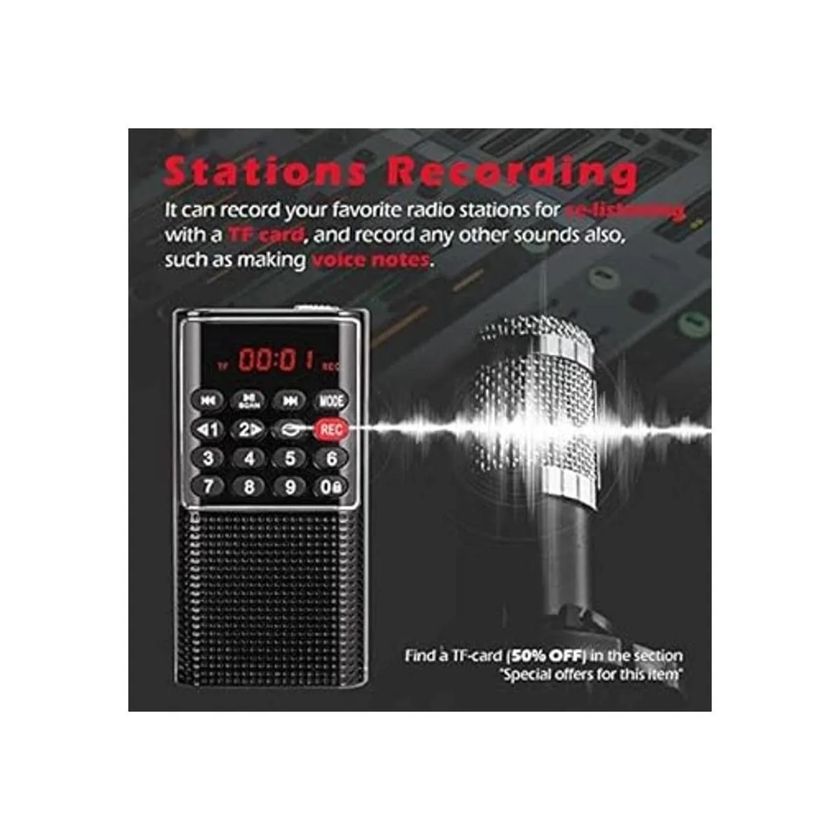 Radio portátil con grabador: Quieres hacer algo interesante mientras escuchas la radio Inserta una tarjeta TF cargada con archivos MP3, luego graba tus emisoras de radio favoritas, prueba lentamente los eventos contados o vuelve a escuchar la música, ahorrando tu valioso tiempo. Además, también puedes grabar tu propia voz para hacer un recordatorio o notar tu opinión mientras escuchas las noticias. Qué bebé divertido para tu placer físico y mental, así como para enriquecer tu visión mental