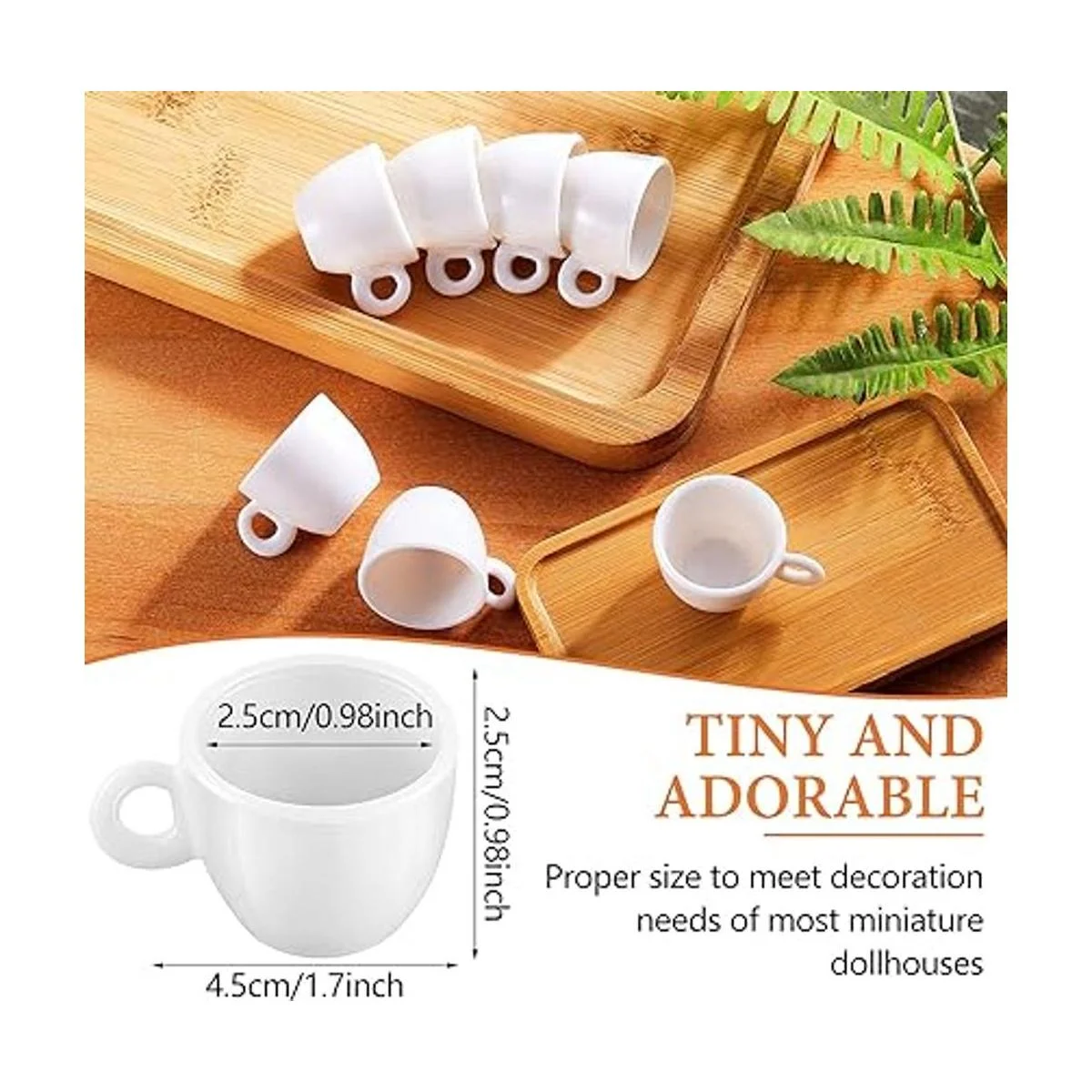 Tamaño adecuado: la taza de café de plástico blanco tiene un borde de diámetro de 1.2 in y una altura de 1.0 in, pequeño y adorable, tamaño adecuado para satisfacer las necesidades de decoración de la mayoría de casas de muñecas en miniatura