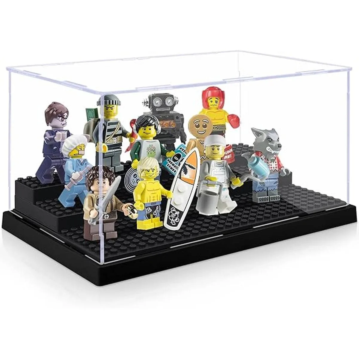 Clear Display The display box is made of acrylic material with high transmittance, it helps you to display your minifigures, action figures, bricks, building blocks and other collections in 360 degrees.