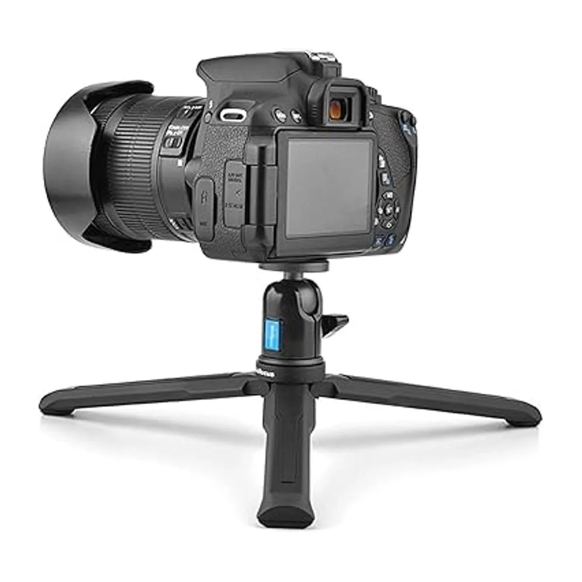 Amplia compatibilidad: el mini trípode de mesa tiene un tornillo macho de montaje estándar de 1/4 pulgadas en la parte superior, equipado con un adaptador de tornillo de 1/4 a 3/8 pulgadas, cámaras SLR digitales fáciles de instalar, estabilizador de cardán, monopié, cabeza de bola, accesorios de vlog, etc