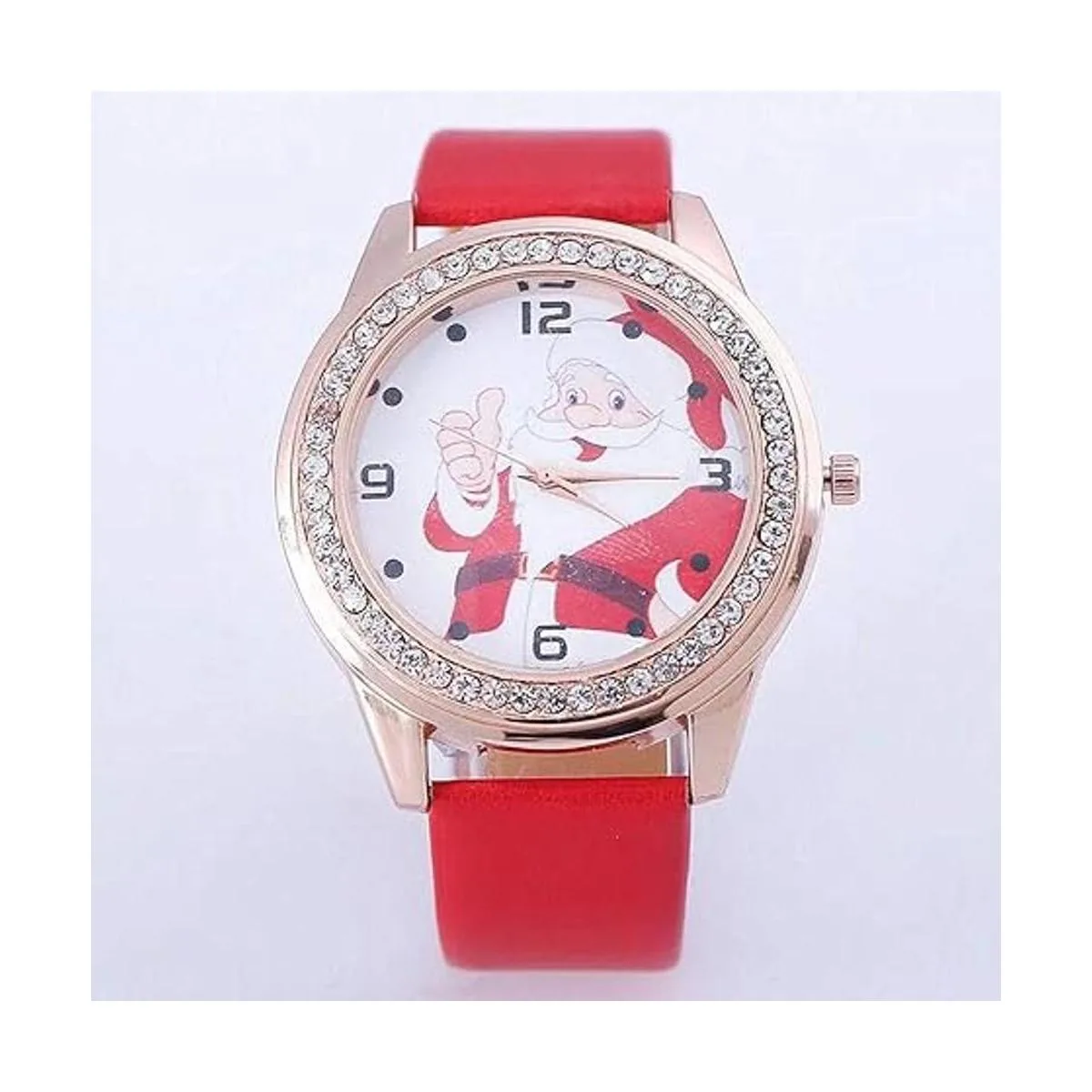 MINILUJIA rbol de Navidad Papá Noel copo de nieve diseño 1.575 in Dial PU cuero mujeres reloj