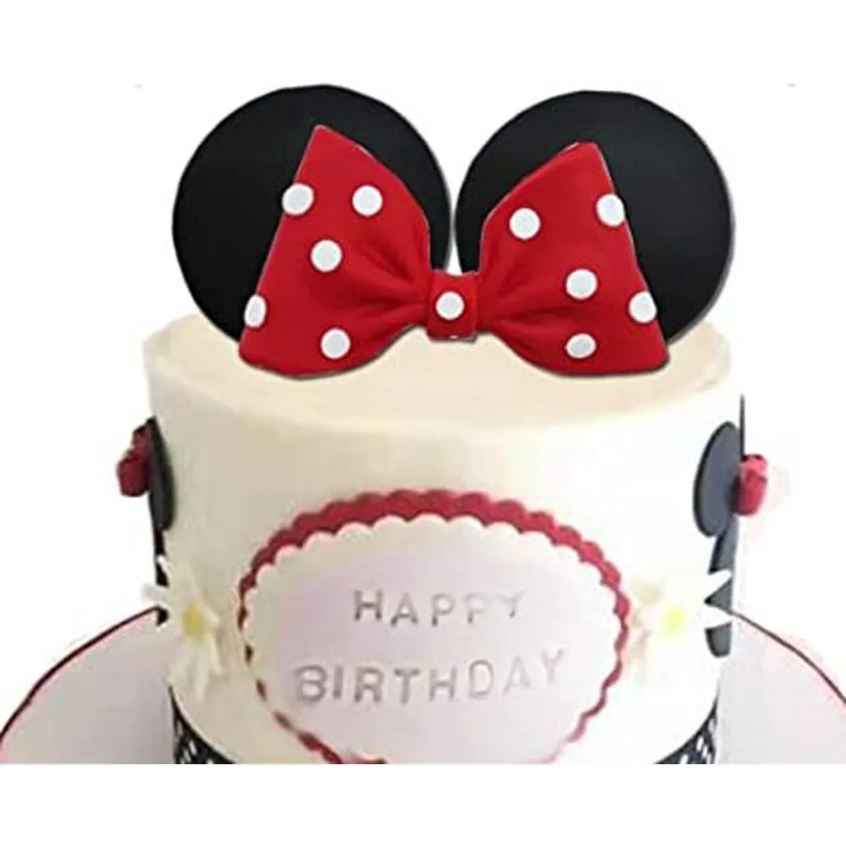 Paquete: 2 orejas, 1 lazo rojo, un juego de decoración de pastel de cumpleaños de Minnie