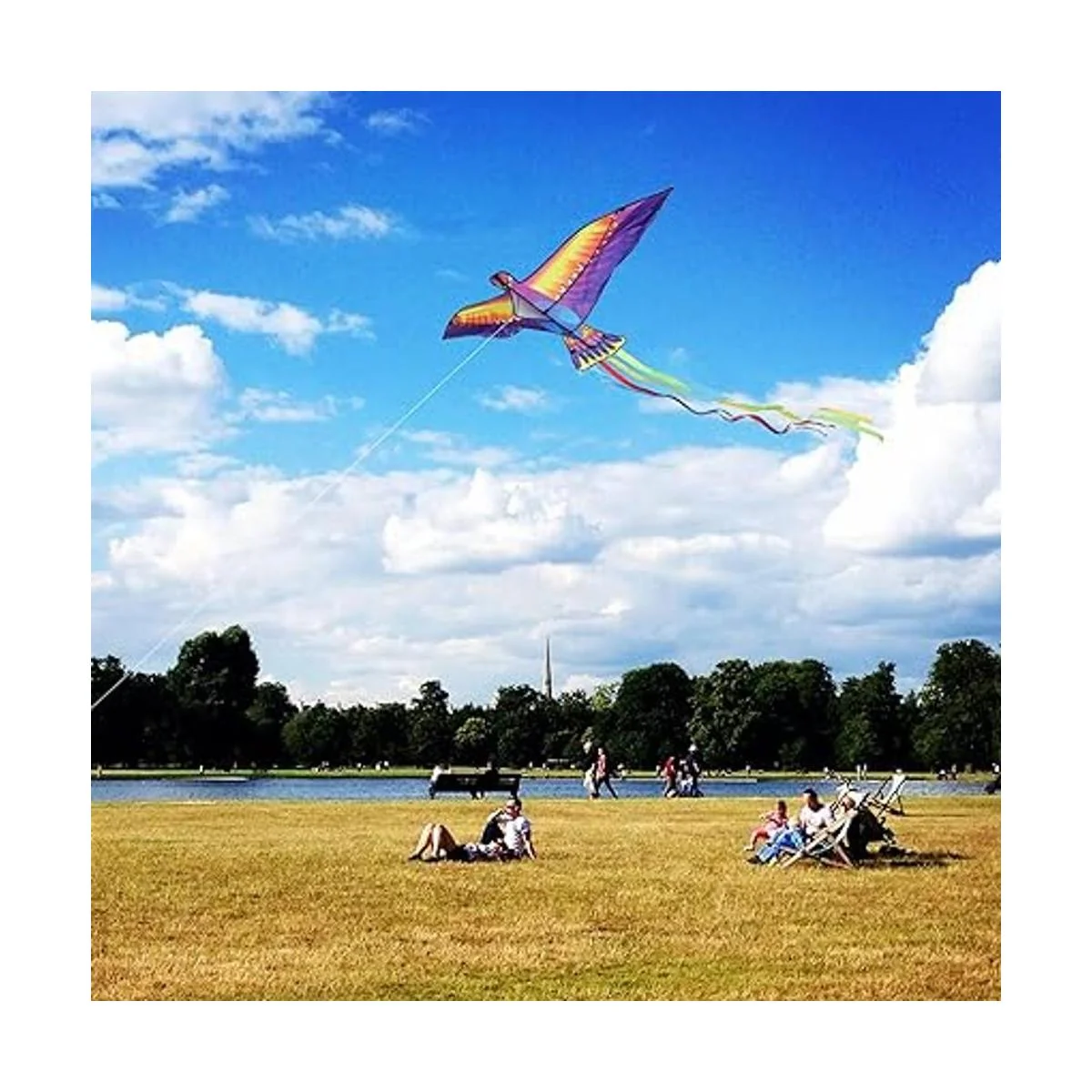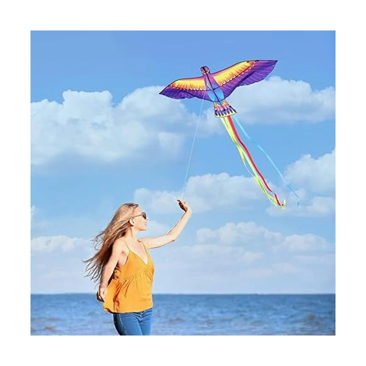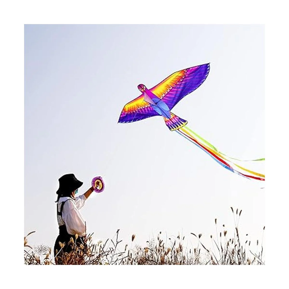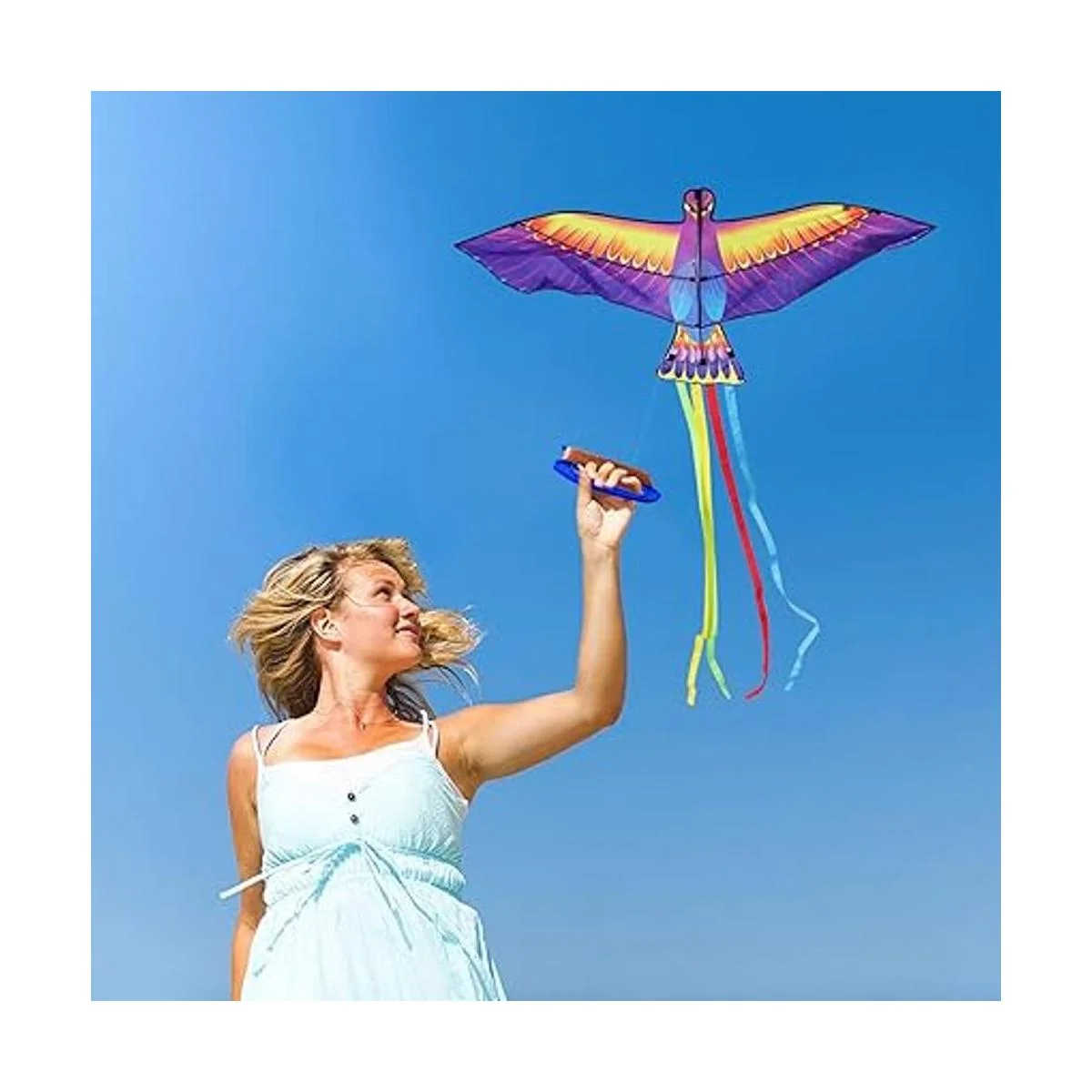 Mints Colorful Life Cometa grande de pájaro Phoenix para niños y adultos, cometa de playa de una sola línea fácil de volar, viene con mango de cometa y cuerda de 300 pies