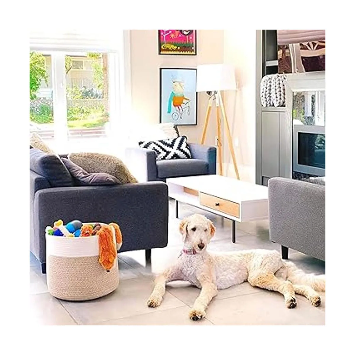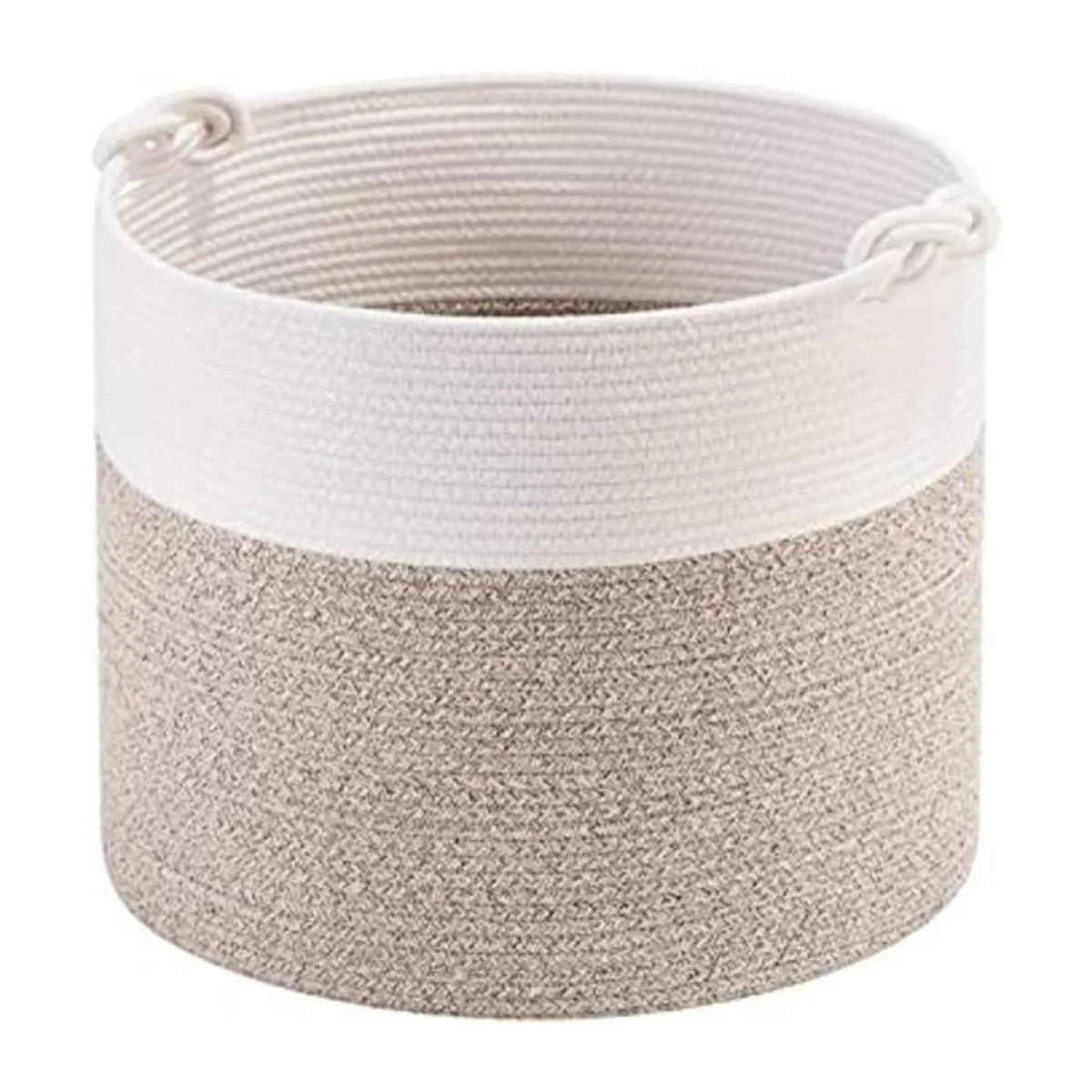 MINTWOOD Design Cesta de almacenamiento de cuerda de algodón tejida de 15 x 14.2 pulgadas, cesta de juguete de peluche, cesta de lavandería, cesta de guardería, cesta de juguete para perro, cesta de manta, cesta de regalo, color marrón claro