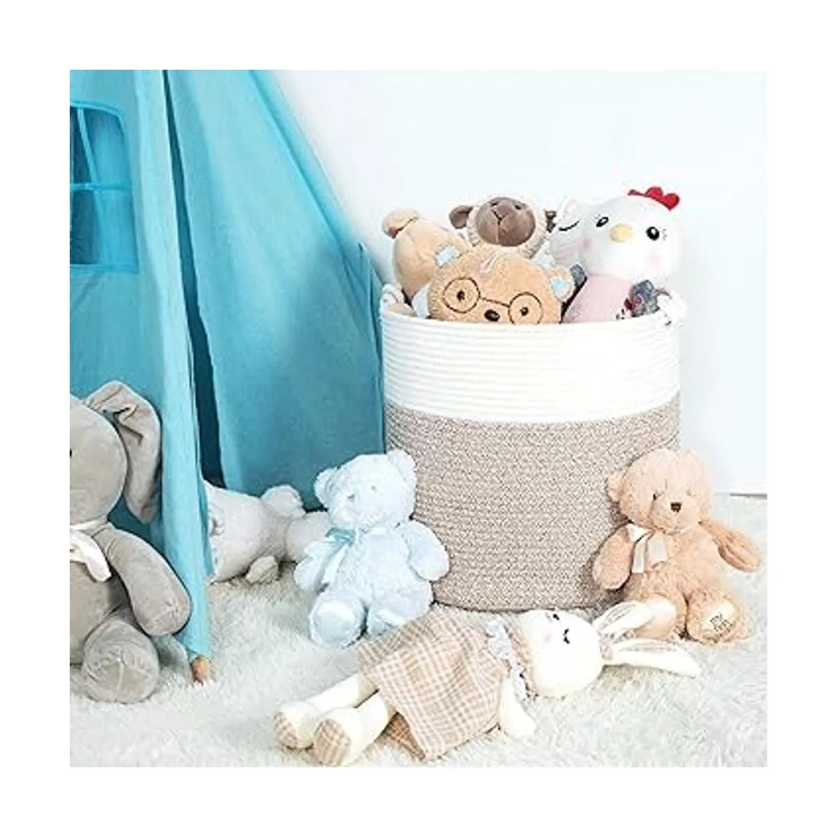 Cestas de almacenamiento de cuerda de algodón de tamaño descendente de 15 x 14.2 pulgadas. Para almacenar artículos como mantas adicionales, mantas, animales de peluche, ropa, ropa de niños y mucho más. También ofrece un montón de espacio para artículos diversos más pequeños, como libros, revistas, accesorios de guardería y juguetes, para mantener tu espacio de vida limpio y ordenado