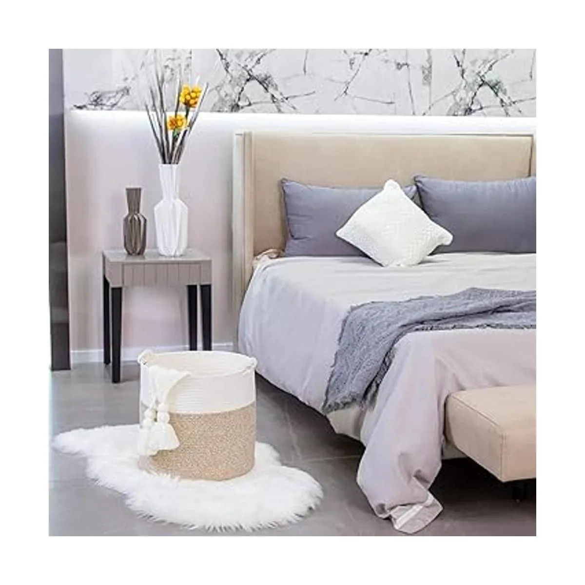 Sin bordes afilados: nuestras cestas de almacenamiento están hechas a mano con cuerdas de algodón de primera calidad, por lo que son ideales para usar en cualquier lugar de tu hogar. La mano de obra de calidad garantiza que no haya bordes afilados o duros para rayar suelos o dedos de los pies. Utilízalos con total tranquilidad alrededor de la casa.
