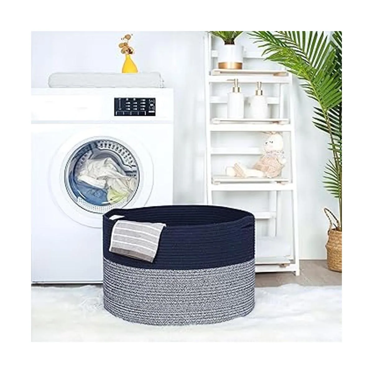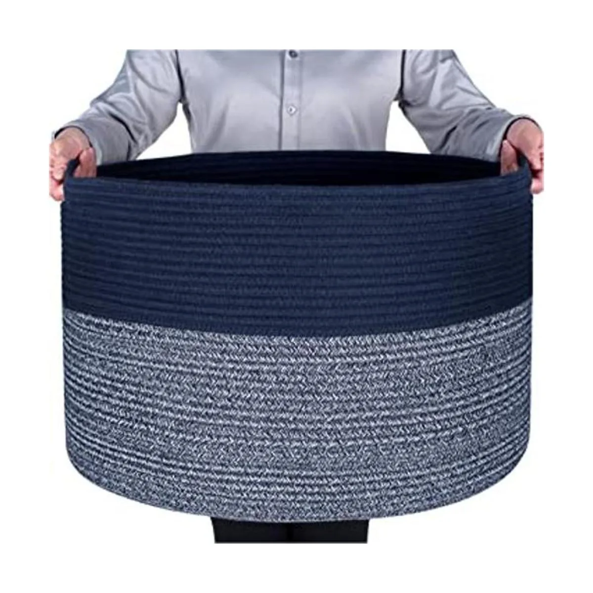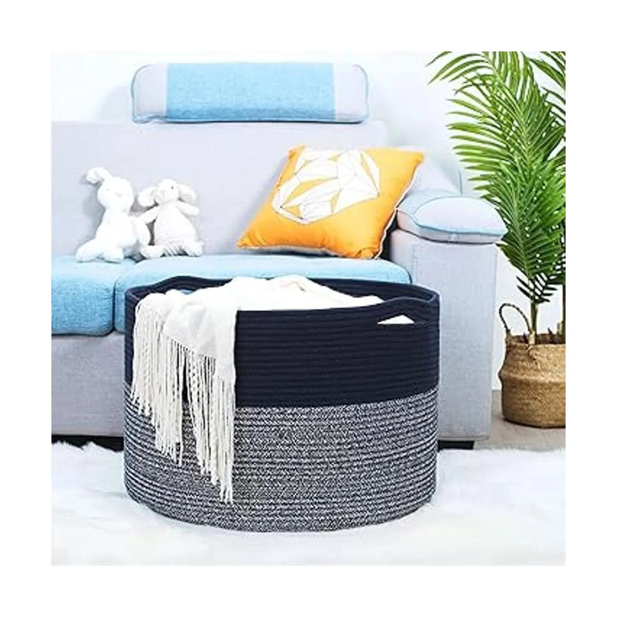 MINTWOOD Design Cesta de almacenamiento extra grande de 22 x 14 pulgadas, canasta de lavandería, cestas de cuerda de algodón tejidas decorativas para mantas, almacenamiento, sala de estar, cesta de almacenamiento de juguetes, azul marino