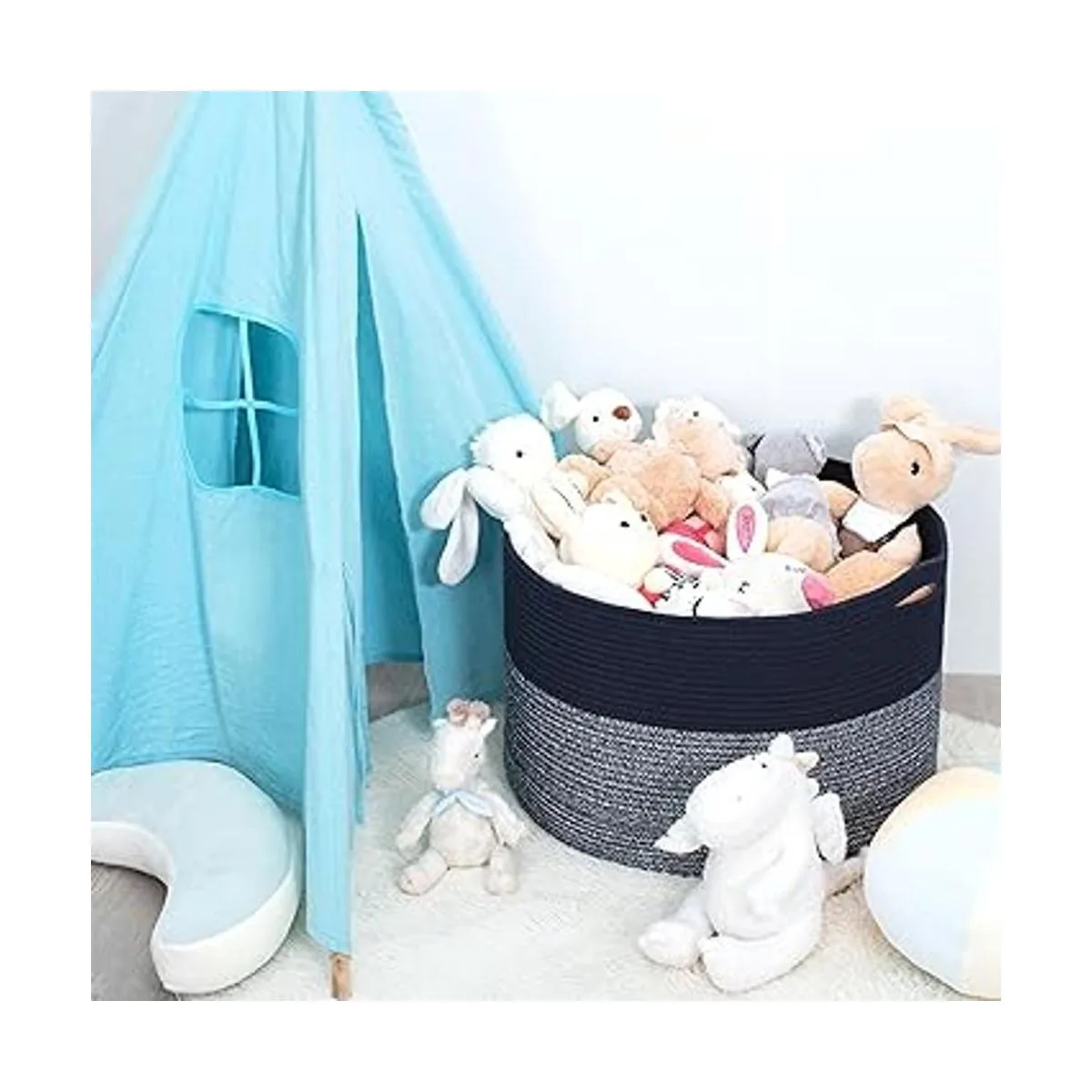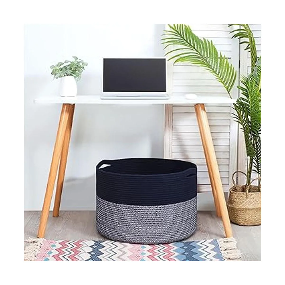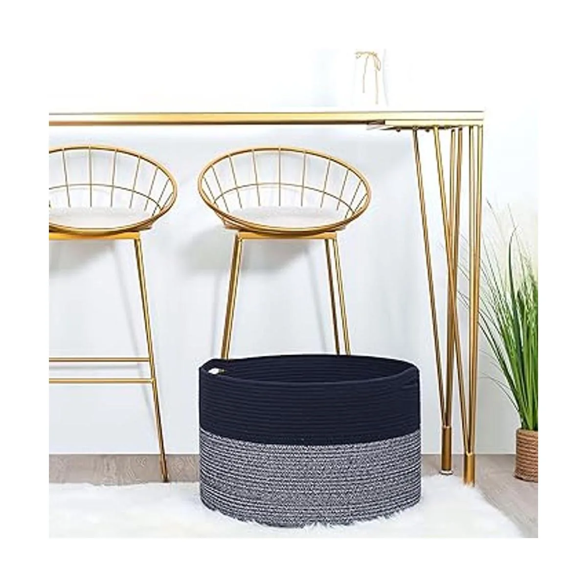 MINTWOOD Design Cesta de almacenamiento extra grande de 22 x 14 pulgadas, canasta de lavandería, cestas de cuerda de algodón tejidas decorativas para mantas, almacenamiento, sala de estar, cesta de almacenamiento de juguetes, azul marino