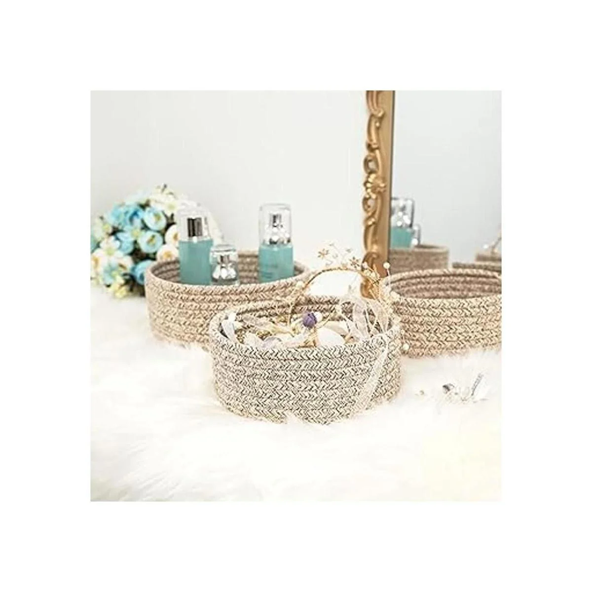 Bonita cesta tejida decorativa: una manera elegante y práctica de crear llamativas exhibiciones de mesa y encimera. Nuestro juego de mini cestas no solo te ayudará a organizarte, su forma elegante y sofisticada y color neutro complementarán cualquier decoración. Ponlo en una mesita de noche, una mesita de noche, una mesa auxiliar de guardería, vestidor, estantes, encimera de cocina o tocador de baño para añadir algunos personajes a tus habitaciones mientras mantiene todos los artículos diversos organizados.