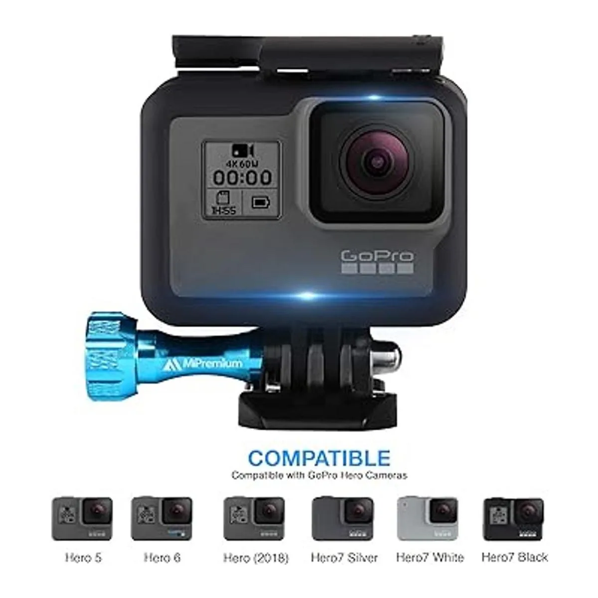MiPremium Carcasa para GoPro Hero 7 6 y 5, color negro, plateado y blanco Kit de accesorios de carcasa con tornillo de aluminio y hebilla de liberación rápida para Hero7 Hero6 Hero5