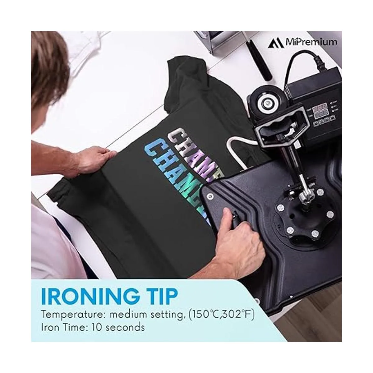 Amplia gama de usos: haz tus regalos de manualidades con vinilo de transferencia de calor MiPremium. Adecuado para una amplia gama de telas como algodón, poliéster, algodón/mezcla de poliéster. Nuestro vinilo Chameleon HTV se adhiere a los textiles tanto por plancha doméstica como por prensa de calor. Nuestro vinilo Chameleon es una solución perfecta para diseños detallados y de calidad superior, letras, numeración y logotipos para todas las prendas que requieren vinilo duradero. Un regalo perfecto para cualquier artesano.