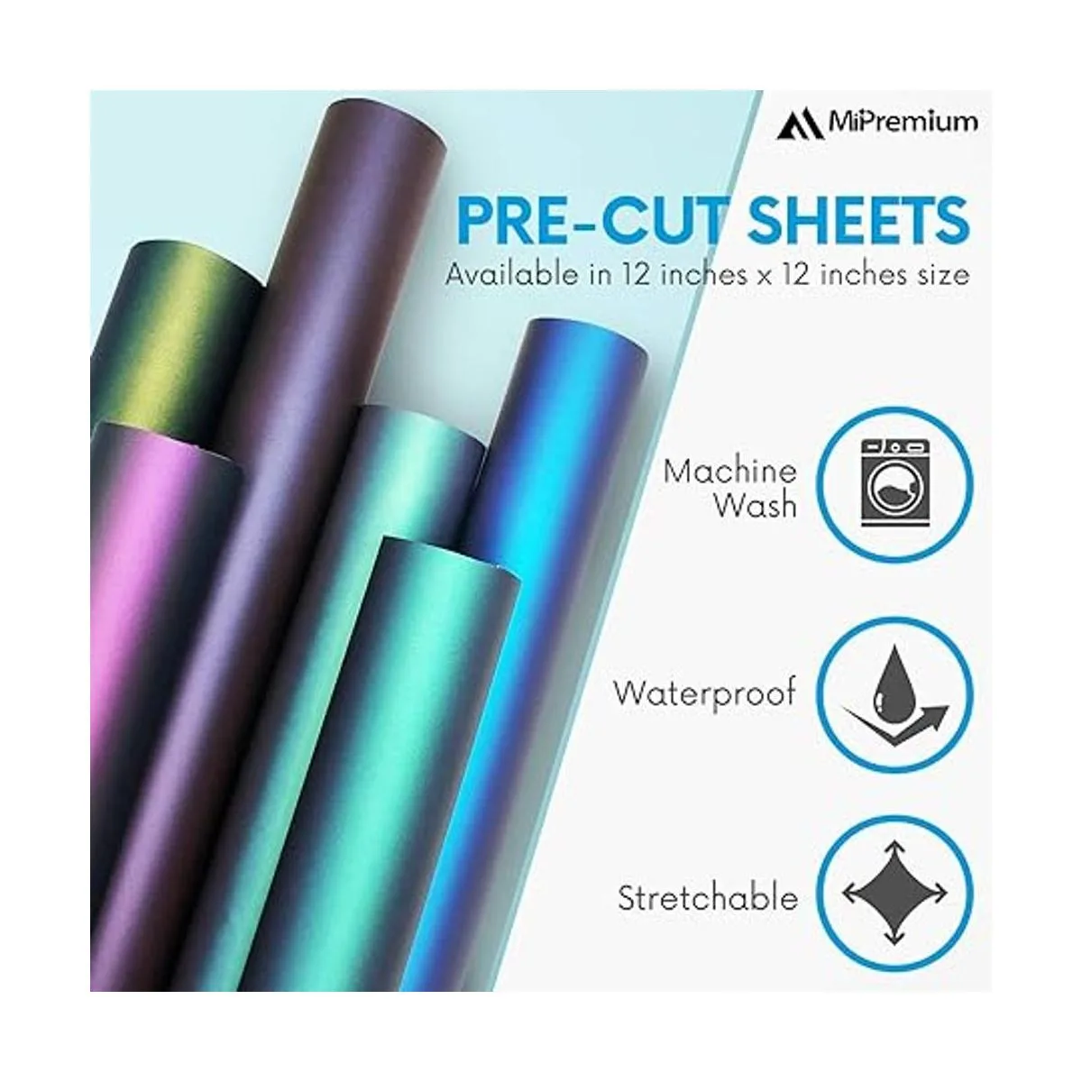 MiPremium Chameleon Vinilo de transferencia de calor HTV compatible con Cricut Air Expression Silhouette Cameo y otros cortadores. Paquete de colores variados de cambio de degradado de 12 x 12 pulgadas 6 hojas.
