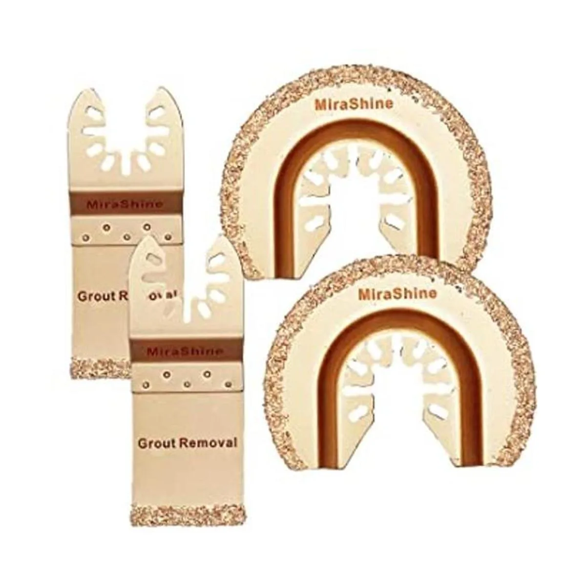 MiraShine 4 hojas de sierra oscilantes de grano de carburo para eliminación de lechada, cuchillas multiherramienta herramienta herramienta removedor de lechada para baldosas, lechada de mortero, ladrillo, mampostería, tablero de cemento y azulejos de cerámica para muescas