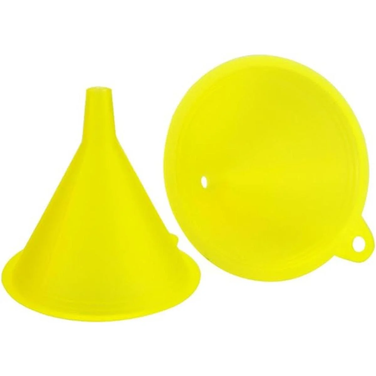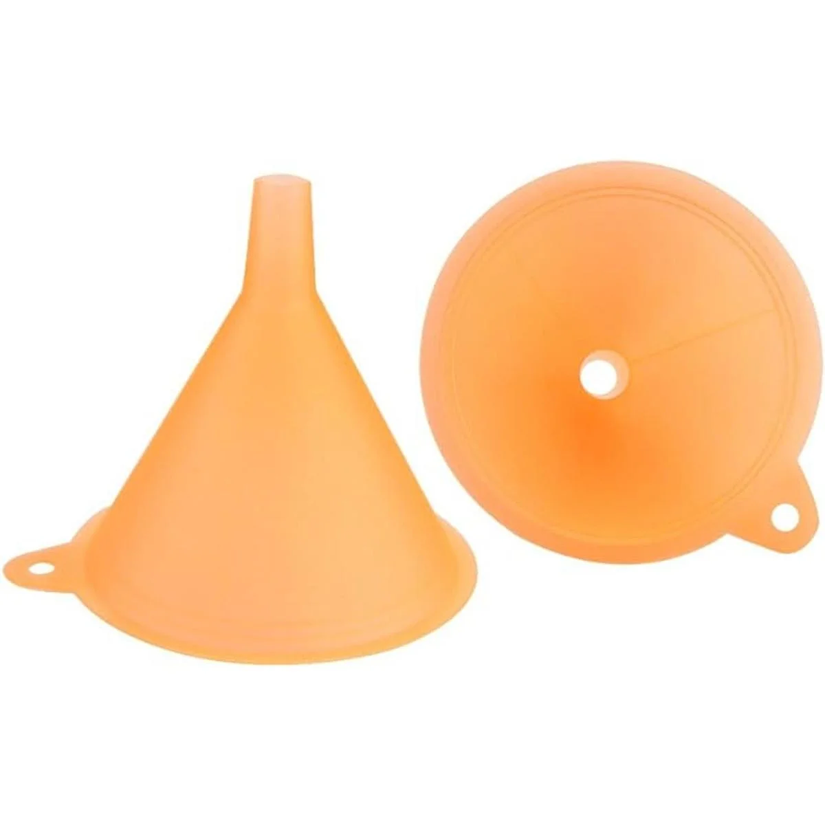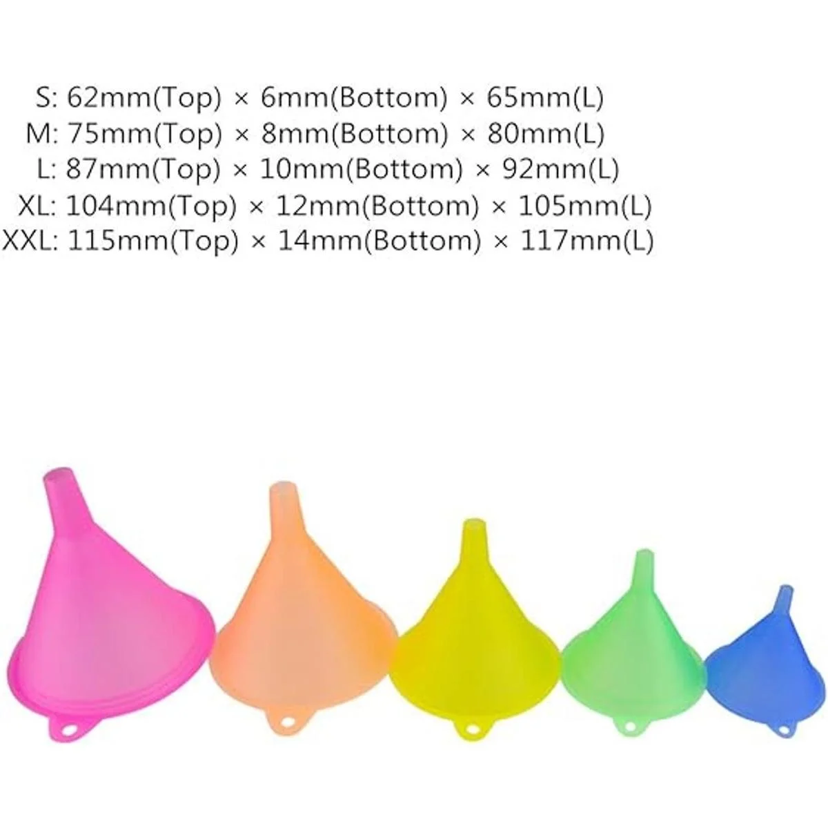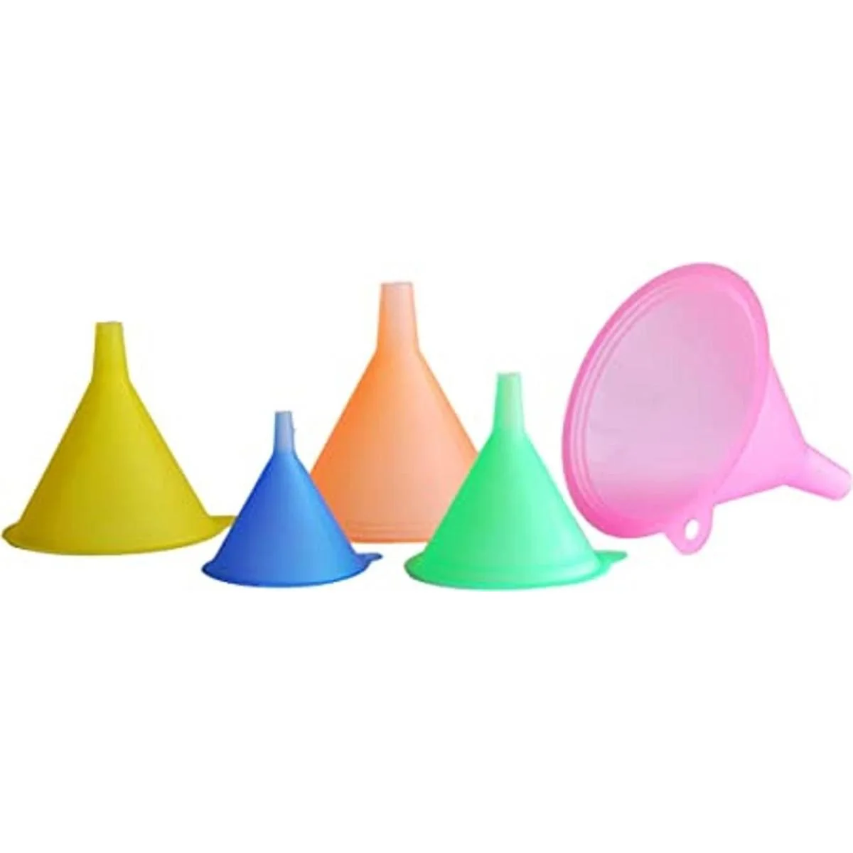 Hecho de plástico de polipropileno; El paquete incluye: 5 embudos con diferentes tamaño. color: rosa, naranja, amarillo, verde, azul.