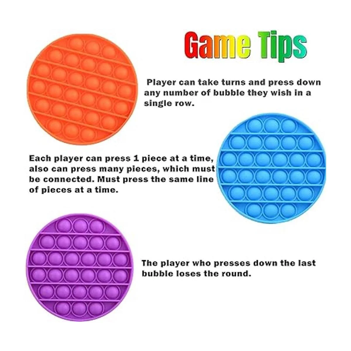 Cómo jugar: presiona las burbujas en una línea y el que presiona la última burbuja perderá. O simplemente dóblalo, presiona y apriétalo. Te ayuda a ti o a tus hijos a reducir la ansiedad y la presión, y construir estabilidad emocional.