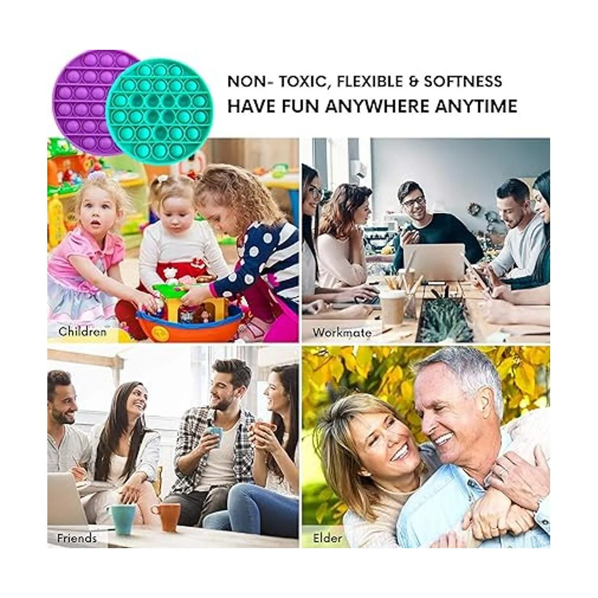 Alivio perfecto del estrés: este juguete de silicona ayuda a aliviar el estrés, restaurar tu estado de ánimo y crea un ambiente divertido. El juguete sensorial de burbujas es un elemento esencial perfecto para el hogar cuando te sientes aburrido e irritable en casa. Has notado que tu hijo, o tú mismo, de repente se sienten ansiosos e inquietos Entonces es posible que necesites o incluso te guste este juguete de burbujas. Alivia el estrés y la ansiedad simplemente jugando con estos juguetes.