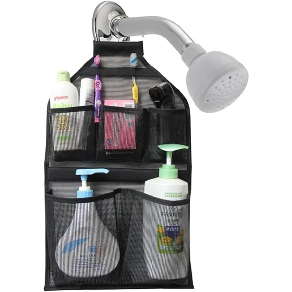 Se seca rápidamente y empaca pequeño, organizador de ducha colgante de malla, ideal para viajes, camping, crucero, universidad, caravana