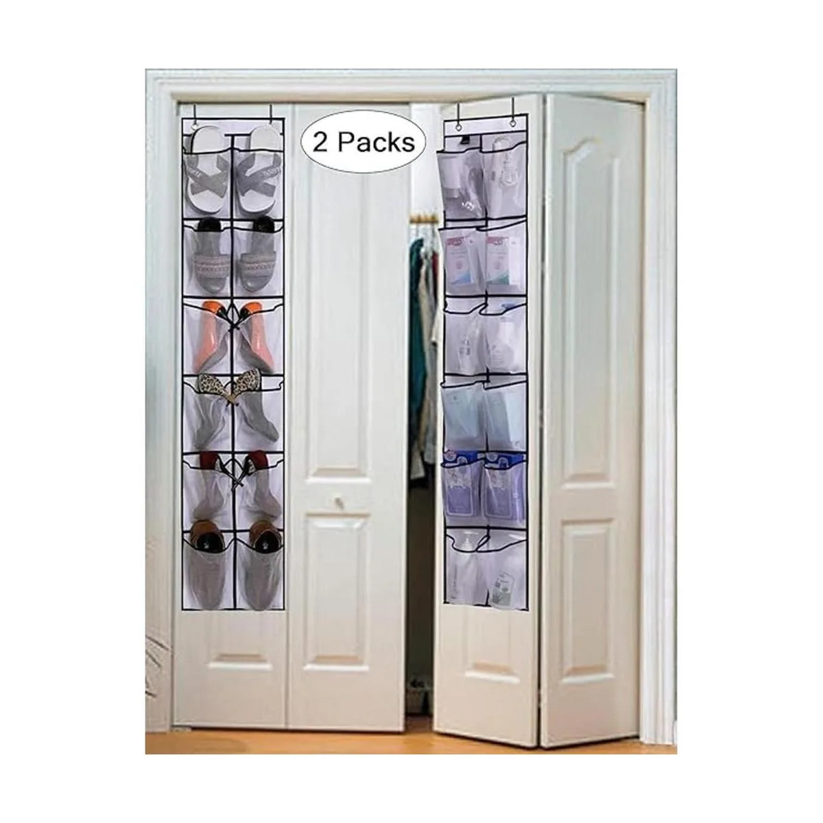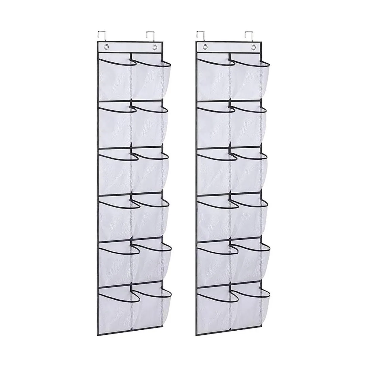 Paquete de 2 soportes para zapatos de puerta, total 24 bolsillos de malla, ocupa poco espacio y es fácil de ver claramente todo