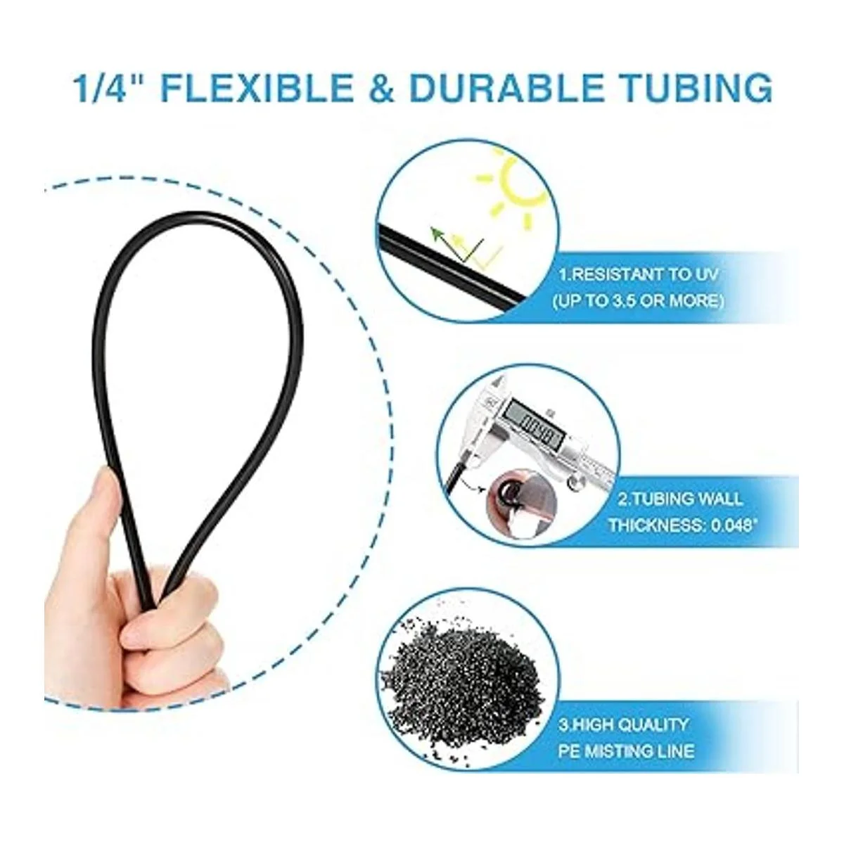 Buena calidad y diseño actualizado: el sistema de refrigeración de niebla para exteriores está equipado con un adaptador universal de latón 3/4 pulgadas, línea de niebla de polietileno negro resistente a los rayos UV, boquillas de latón mejoradas que no tienen fugas y tienen un spray más suave, buen conector de tubo de sellado. Todos estos accesorios de composición premium se utilizan para hacer que el sistema de refrigeración por niebla sea más duradero y sin fugas.
