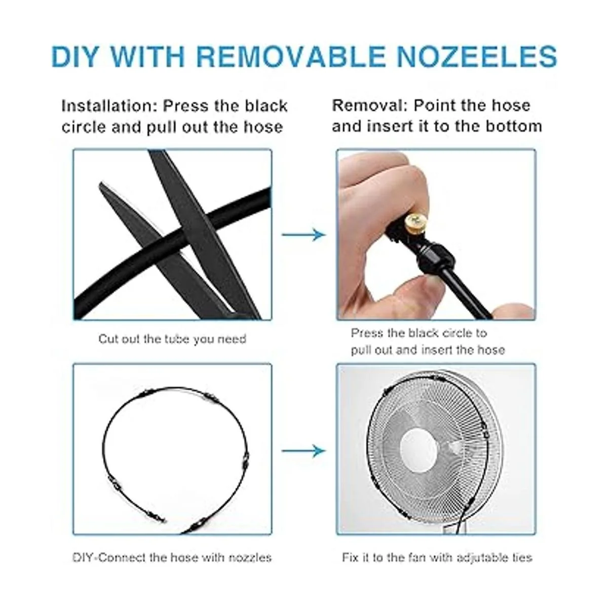 Pulverizadores para patio exterior : El sistema de refrigeración por niebla puede enfriar las temperaturas circundantes hasta 68.0 F o 68 F creando una niebla tranquila y refrescante de gotas de agua finas, absorber el calor y reducir la temperatura, disfruta de tu fresco verano exterior.