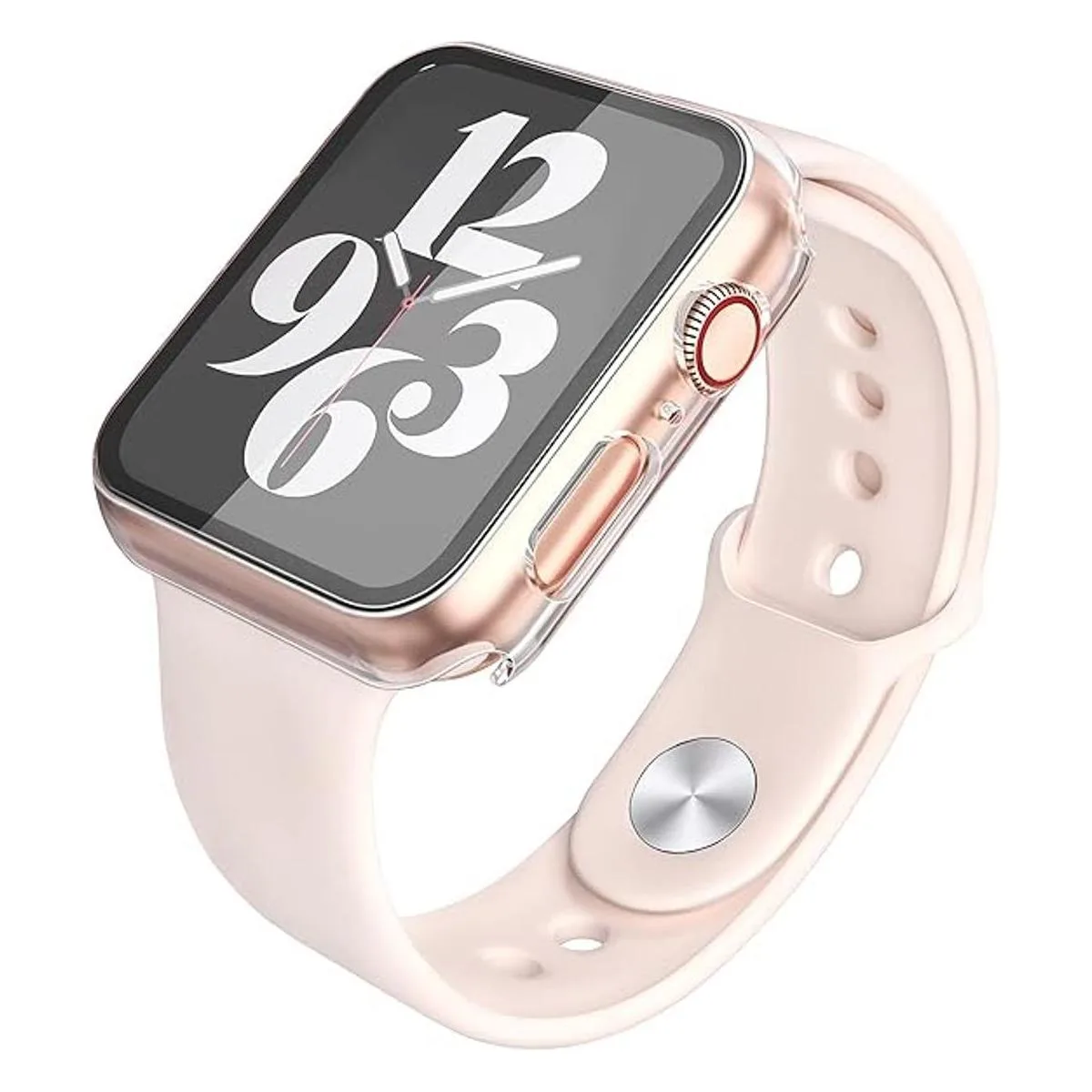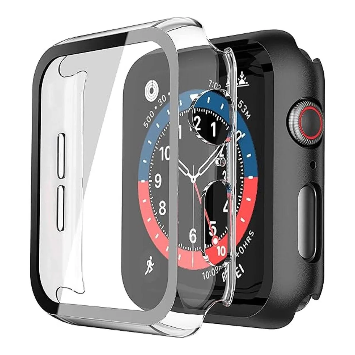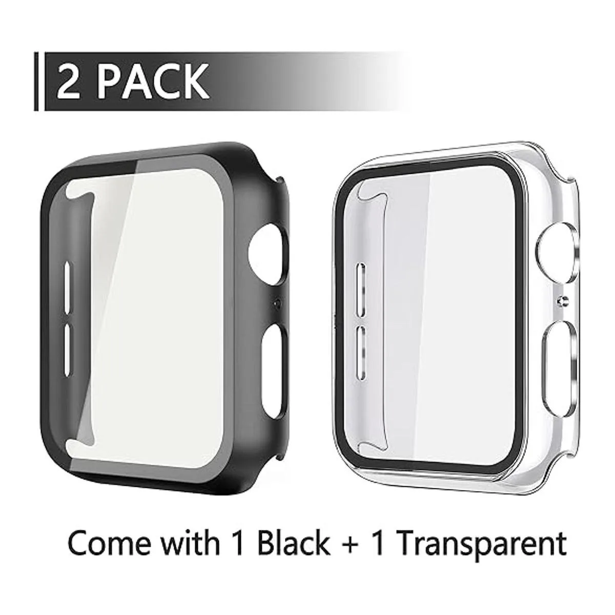 Misxi Juego de 2 fundas de policarbonato con protector de pantalla de vidrio templado a prueba de golpes y compatibles con iWatch o Apple Watch series 6, 5, 4 y SE de 40 mm; 1 unidad de color negro y 1 unidad transparente