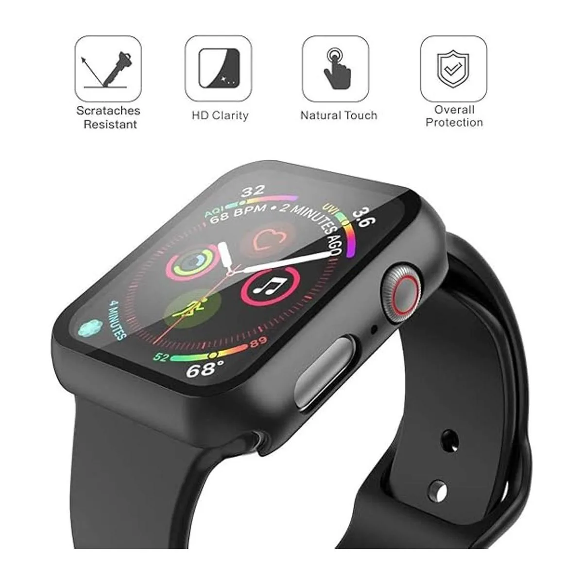 A prueba de golpes: esta funda está hecha de material de policarbonato con vidrio templado integrado y cubre toda la parte delantera y los bordes curvos del reloj para evitar rayones y proteger de caídas y golpes.