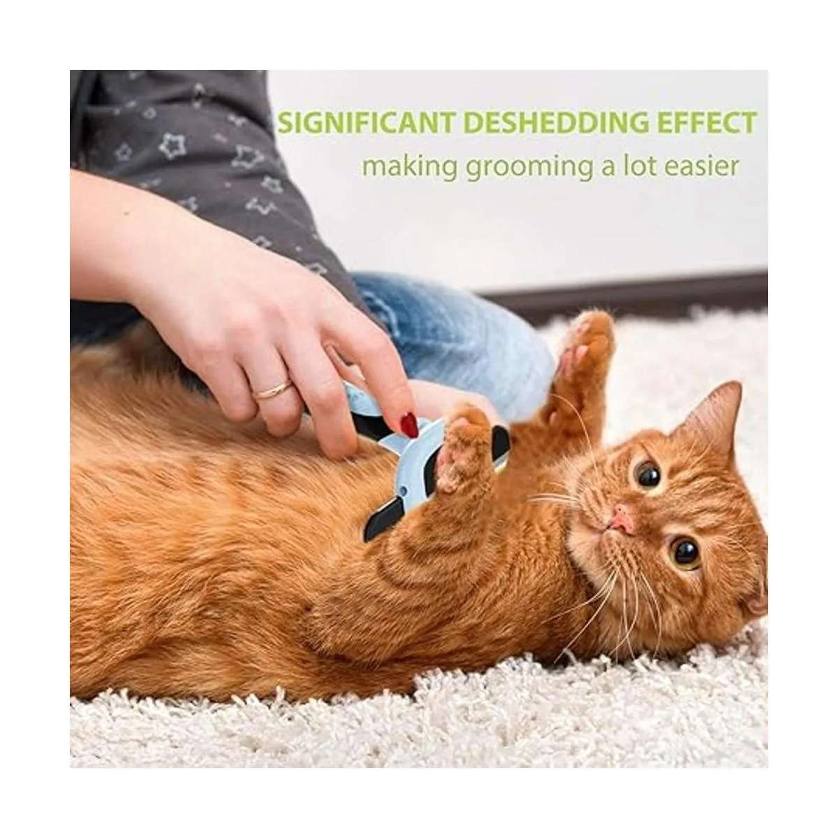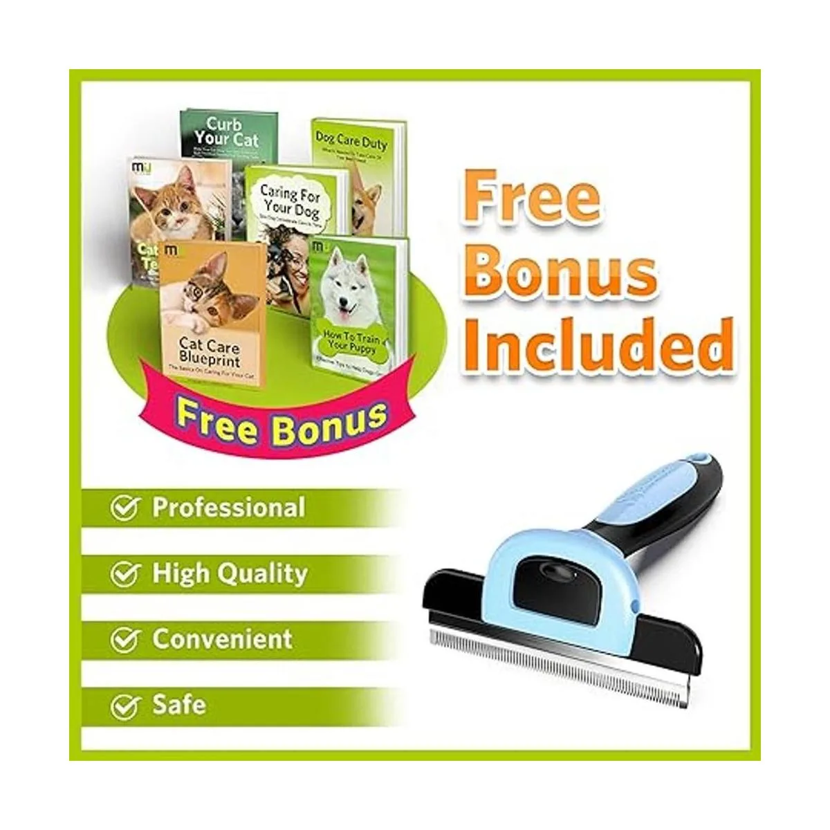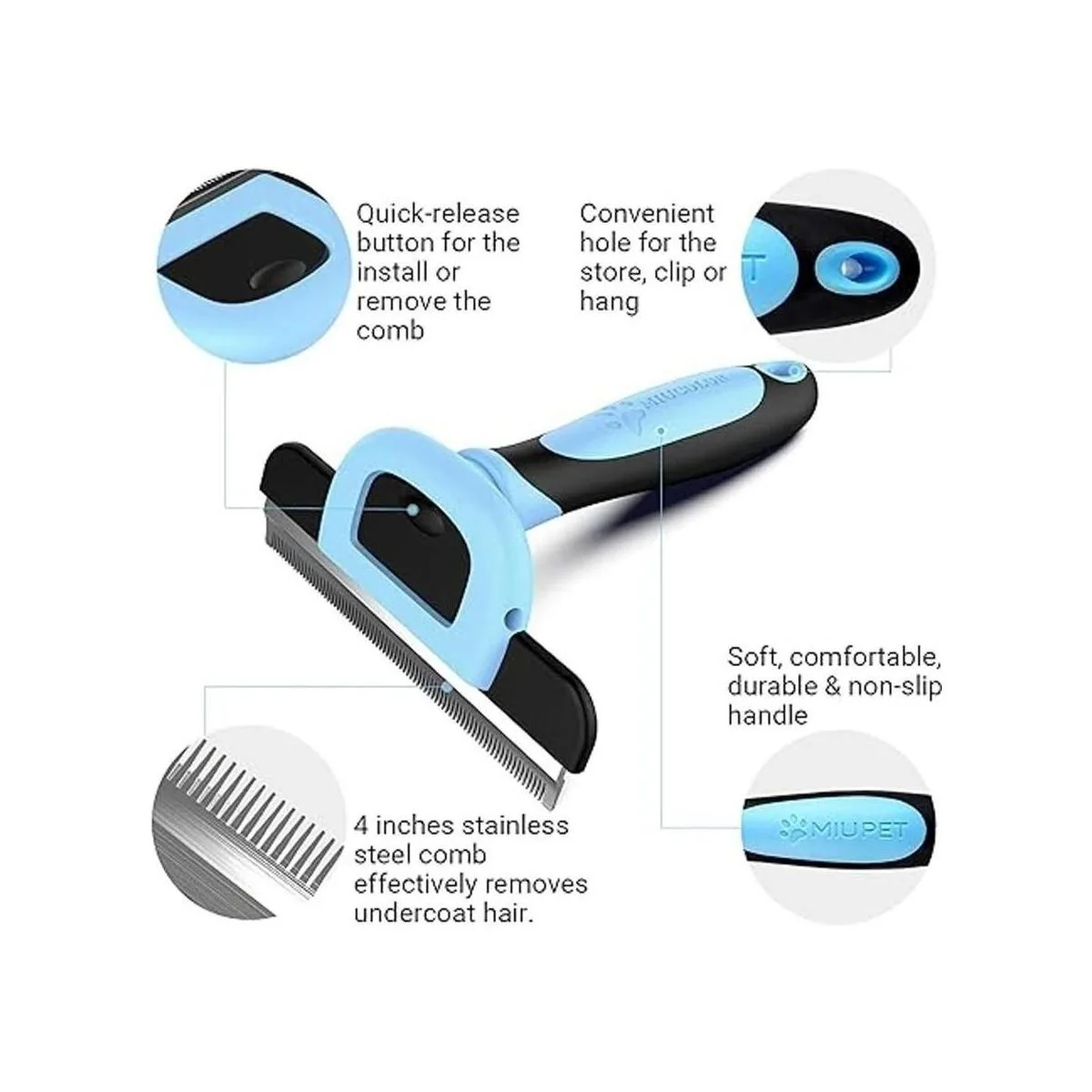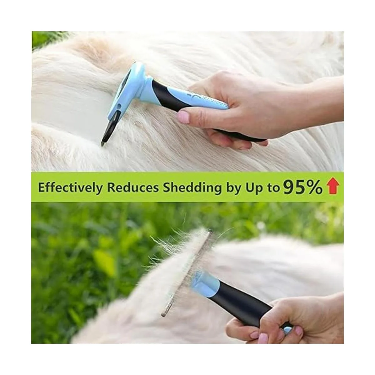 Cepillo de aseo de alta calidad: nuestro deshedder tiene un borde de acero inoxidable de 4 pulgadas con dientes distribuidos uniformemente, elimina rápida y fácilmente el pelo suelto, al mismo tiempo peina eficazmente el pelo más profundo y estimula la circulación sanguínea de la piel.
