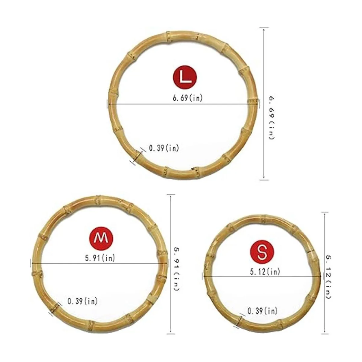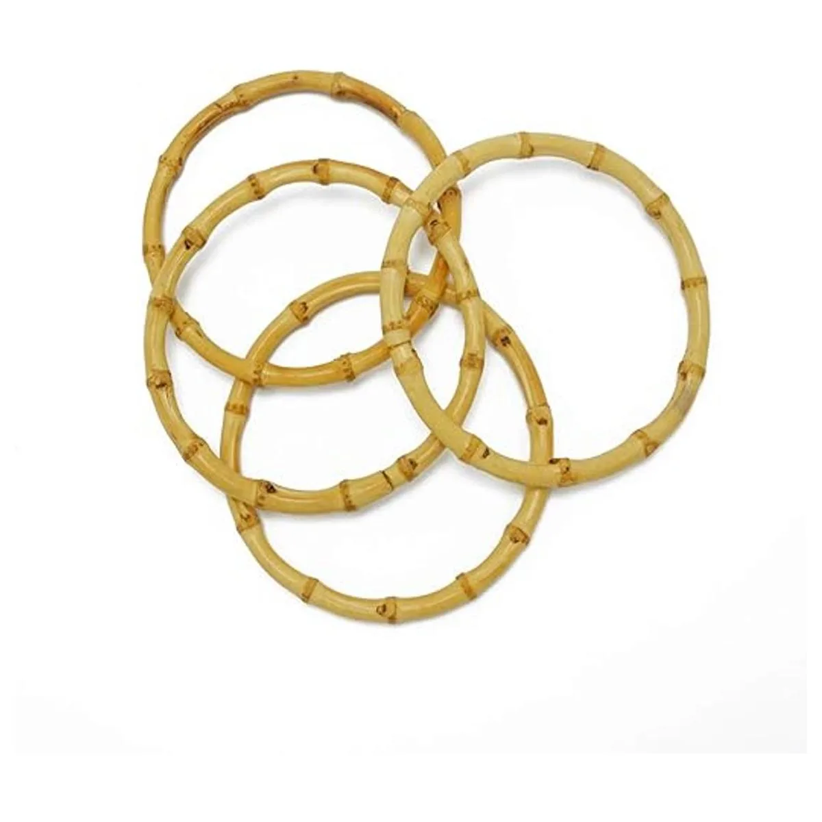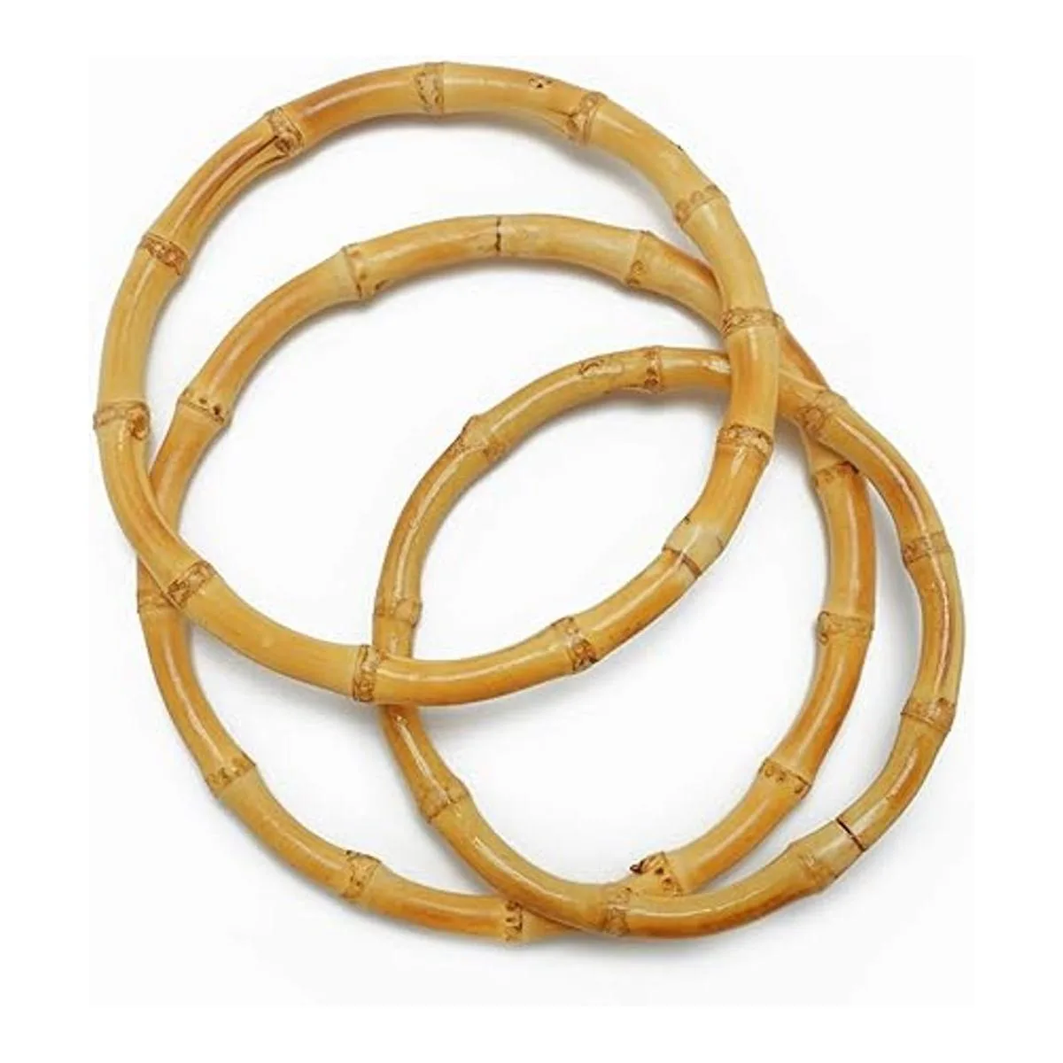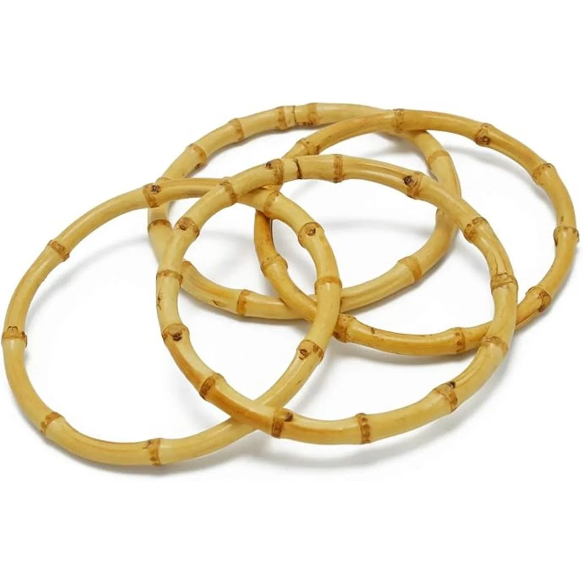 Miuco Juego de 4 asas redondas de bambú hechas a mano para bolso de mano, repuesto para bolsas de bricolaje hechas a mano, accesorios de 5,90 pulgadas