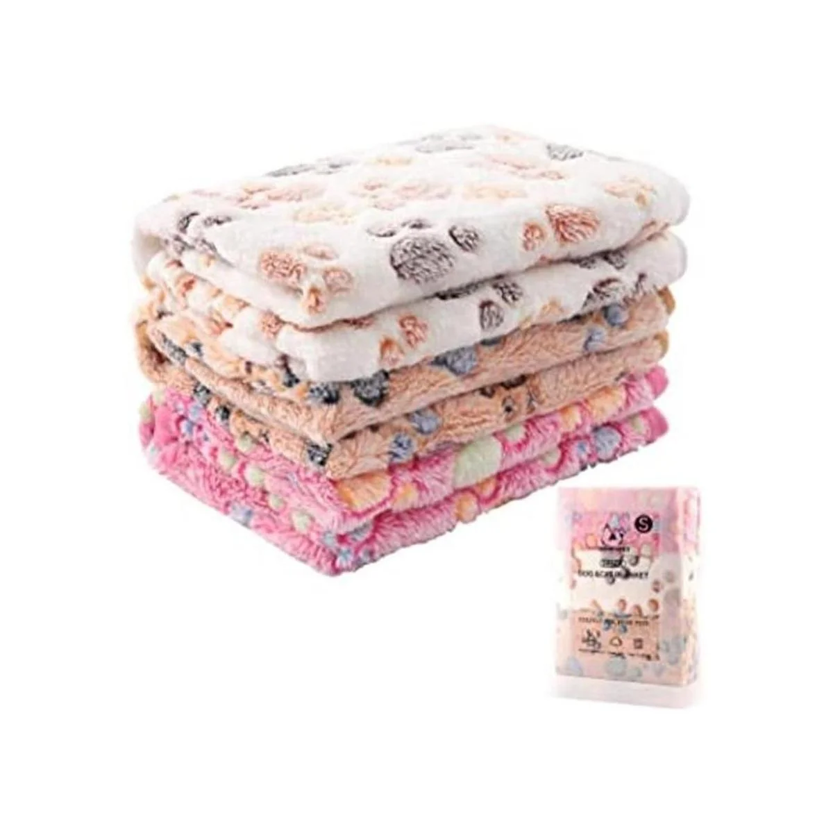 Material suave: textura de forro polar de franela de doble cara poliéster con bonito diseño de huellas de perro. Suave, acogedor y duradero. Las mantas de felpa esponjosas bien hechas no se forman bolitas y no se decoloran. Puede mantener a tu mascota caliente y cómoda en invierno y verano, gran manta para cachorros y gatitos. Esta bonita manta también es un buen regalo para cobayas, conejos, hurones y otros animales pequeños.