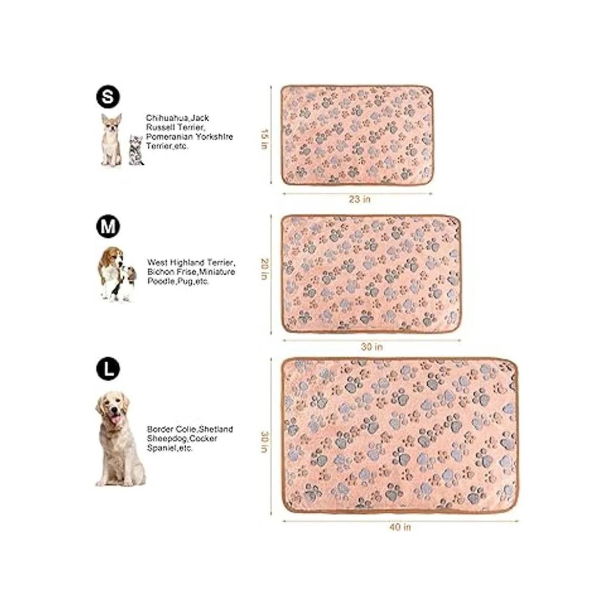 Tamaños disponibles: pequeño 23 x 15 pulgadas 23.6 x 15.7 in / mediano 30 x 20 pulgadas 29.9 x 20.5 in / grande 40 x 30 pulgadas 40.9 x 29.9 in. Cada tamaño viene con 1 pieza cada marrón/rosa/blanco, comprueba el tamaño cuidadosamente para adaptarse a tu mascota antes de comprar.