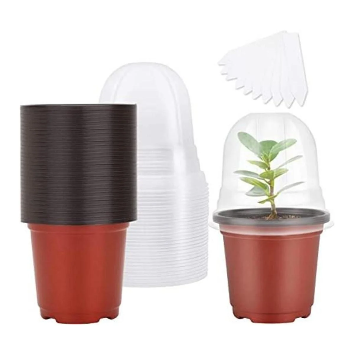 MIXC Macetas para niños con cúpula de humedad de 4 pulgadas, macetas de plástico transparente suave para jardinería, macetas para plantar pequeñas bandejas de inicio de semillas para plántulas con 10 etiquetas de plantas, 30 juegos
