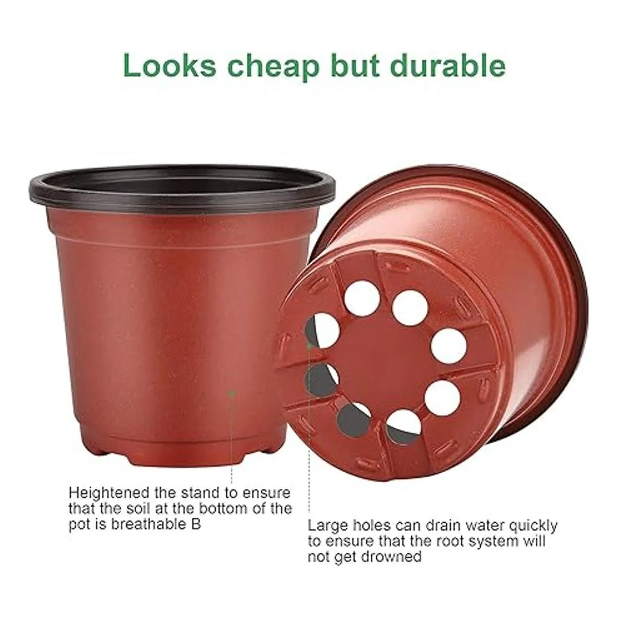 La maceta de vivero tiene 8 pequeños agujeros de drenaje en la parte inferior para mantener la tierra drenada y ventilada para evitar la pudrición de la raíz. El borde elevado superior hace que sean fáciles de manejar y apilar.