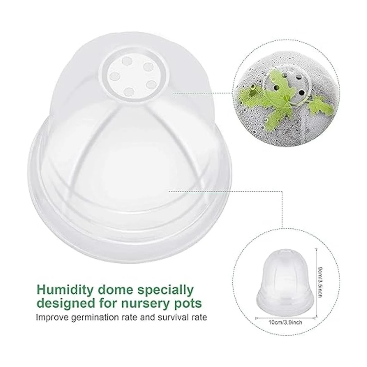 Maceta para vivero con cúpula de humedad; mantiene la humedad y la temperatura. Esta humedad mejorará la tasa de germinación y la tasa de supervivencia. Altura de la cúpula: 3.5 in.