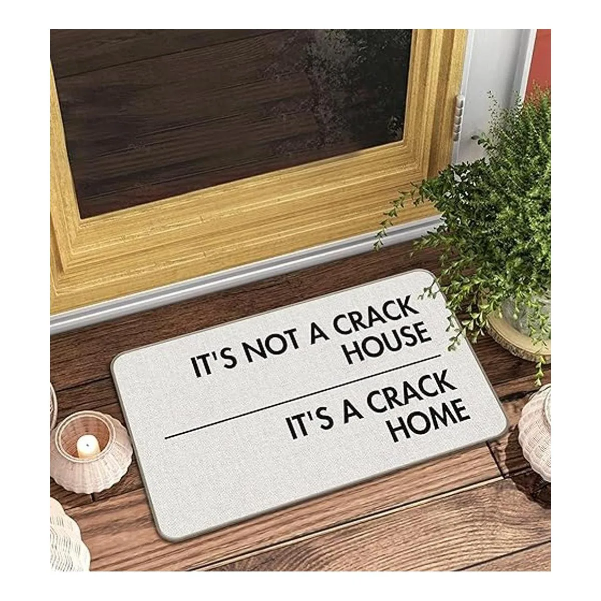MIXDING Its Not A Crack House Its A Crack Home Tapete para puerta de entrada con citas divertidas de 17 x 30 pulgadas, decoración de puerta principal, porche y decoración interior al aire libre